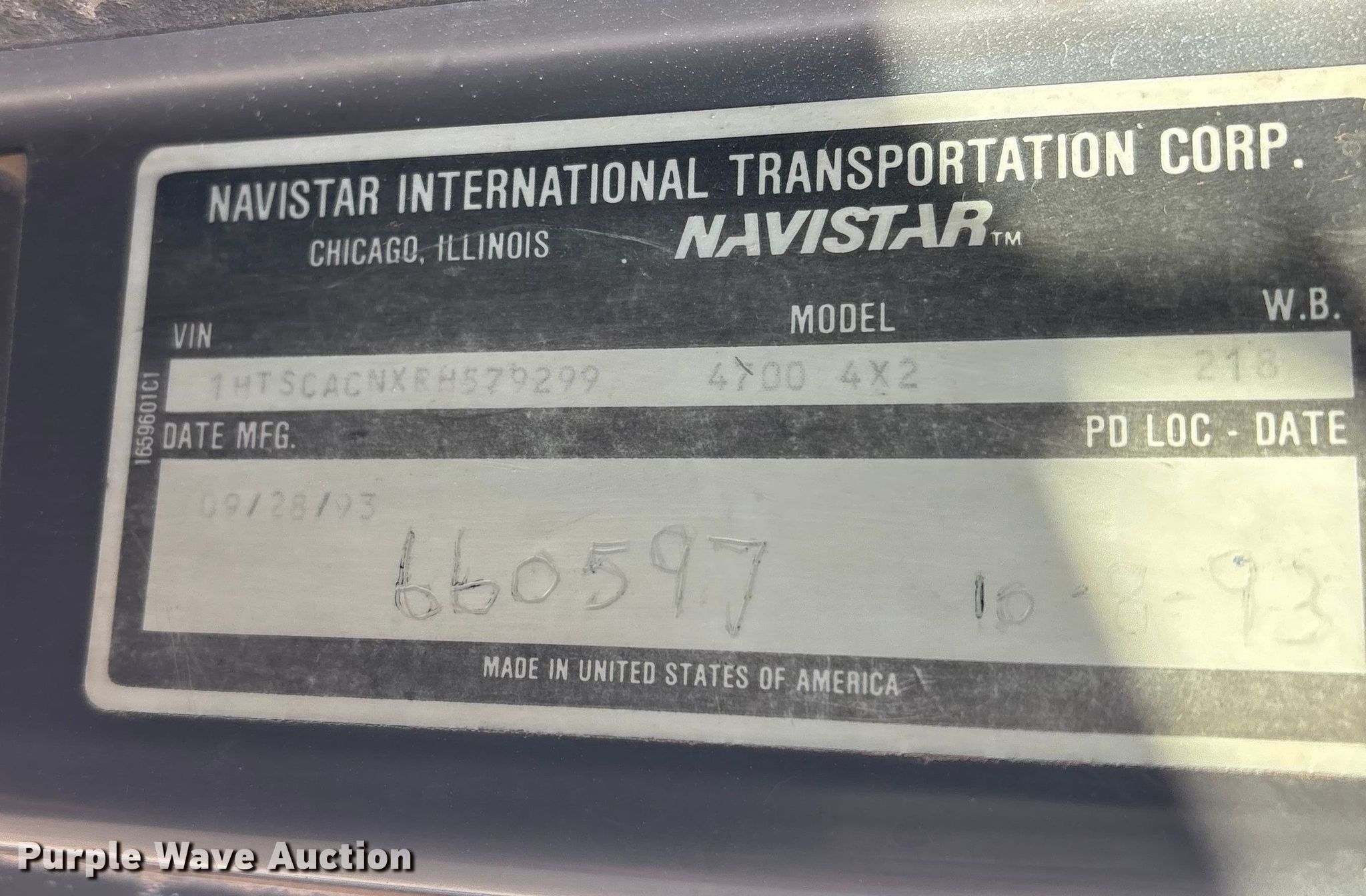 1994 International 4700 tank truck. Miles: 158,365 on odometer, VIN: 1HTSCACNXRH579299. Engine Displacement: 14.0L, Cylinders: 6, Fuel type: Diesel, HP: 150. Transmission International 6 Plus, Manual, Speed: 7. Chassis Axles: Single, Suspension: Spring, Brakes: Air, PTO, Wheelbase: 218". Interior AC, Heat. Features Bed Tank bed, Brown-Minneapolis Tank & Fabr. Co., Serial: 3-9410-25, Length: 15' 6", Width: 93", Capacity: 2,000 gallons (4) compartments 400 gallons, (2) 500 gallons, 600 gallons, Hose reel, Top fill, Rear outlets: 2.5". Tires Size: 11R22.5. Notes Windshield chipped or cracked. Oklahoma title. Title distribution may be delayed up to 30 days from verification of funds. Fleet Fuels LLC. Tulsa, OK 74116