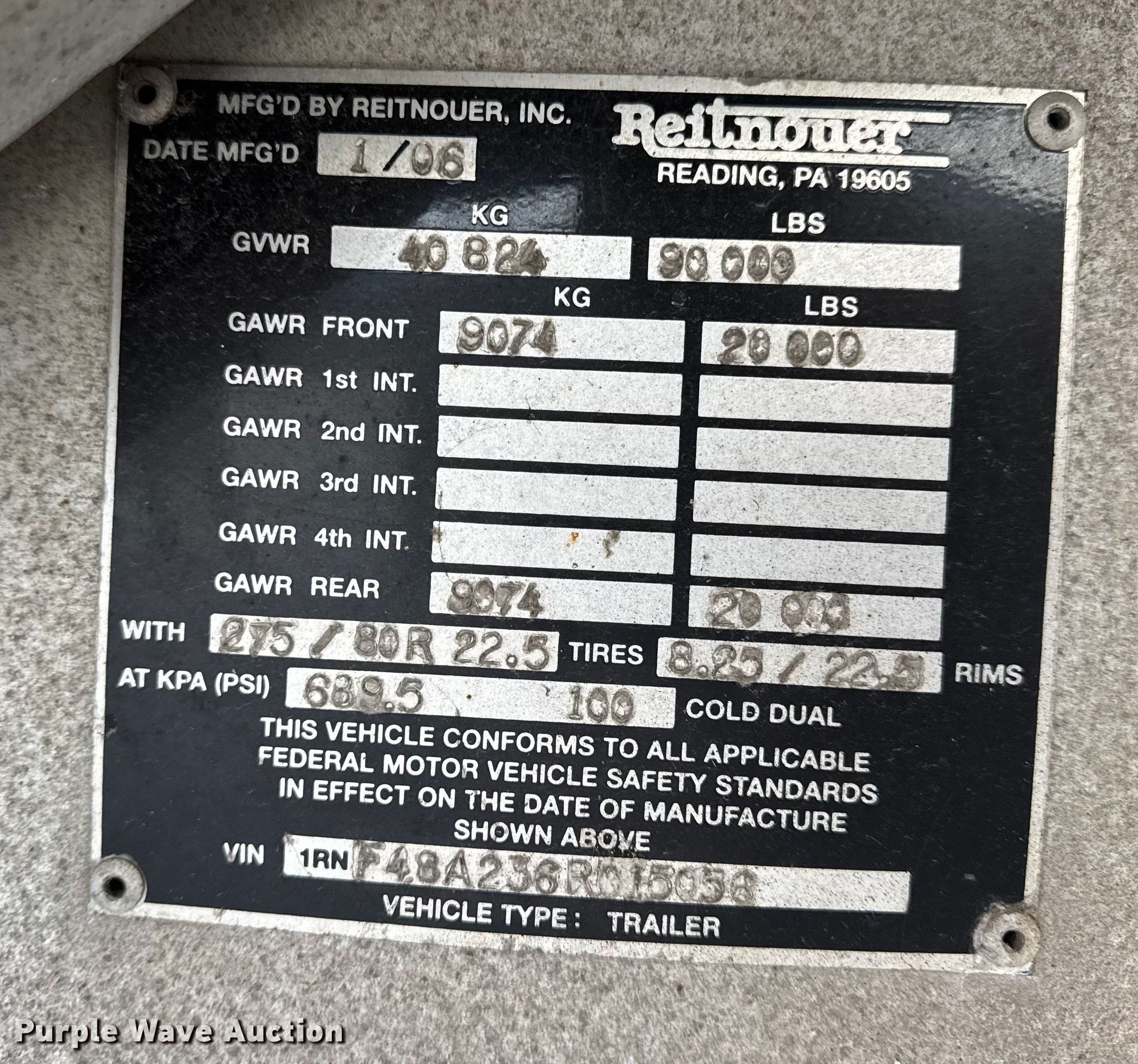 2006 Reitnouer MaxMiser flatbed trailer. VIN: 1RNF48A236R015056. Dimensions Overall Length: 47' 9", Width: 102". Features Deck type: Aluminum. Chassis Landing gear: Dual, Suspension: Air, Brakes: Air, Axles: Tandem, Spread, GVWR: 90,000 lbs, GAWR: 20,000 lbs. Tires Aluminum wheels, Size: 295/75R22.5. Missouri title. Title distribution may be delayed up to 14 days from verification of funds. Scott Transportation. Farber, MO 63345