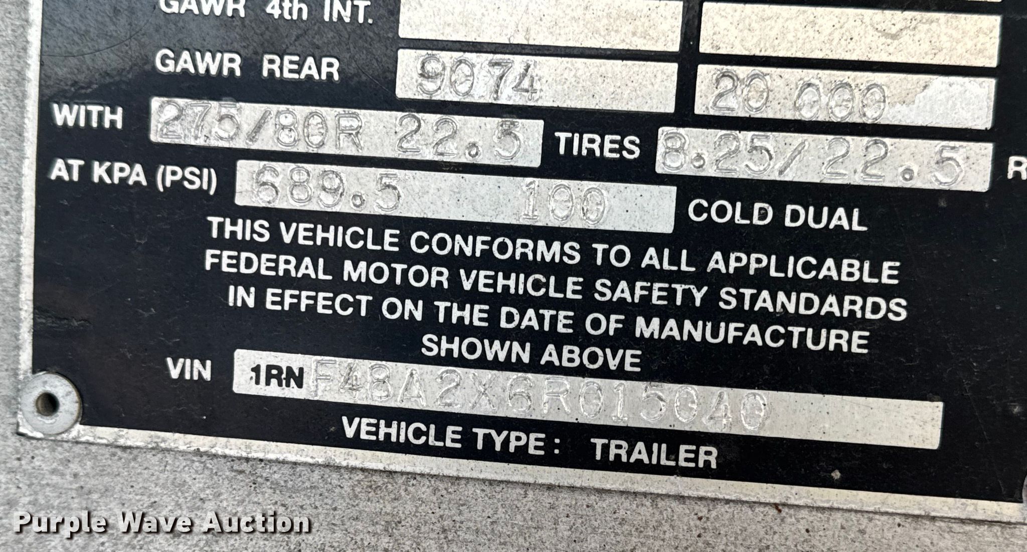 2006 Reitnouer MaxMiser flatbed trailer. VIN: 1RNF48A2X6R015040. Dimensions Overall Length: 48' 4", Width: 102". Features Deck type: Aluminum. Chassis Landing gear: Dual, Suspension: Air, Brakes: Air, Axles: Tandem, Spread, GVWR: 90,000 lbs, GAWR: 20,000 lbs. Tires Aluminum wheels, Size: 295/75R22.5. Missouri title. Title distribution may be delayed up to 14 days from verification of funds. Scott Transportation. Farber, MO 63345