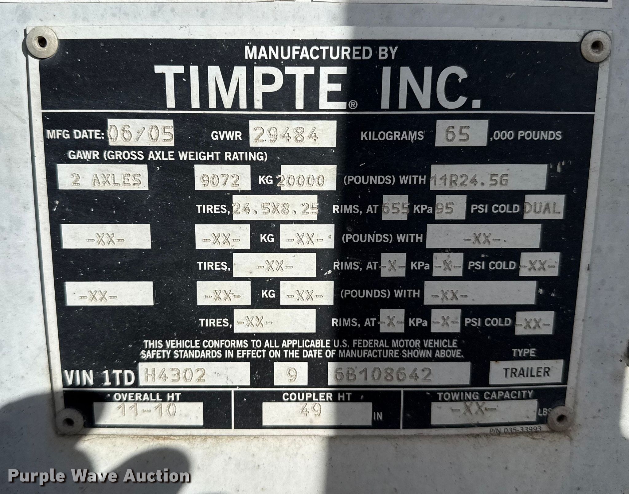 Purple Wave is selling a used Grain or Commodity Trailer in Kansas. This item is a 2006 Timpte grain trailer with the following: VIN: 1TDH430296B108642
