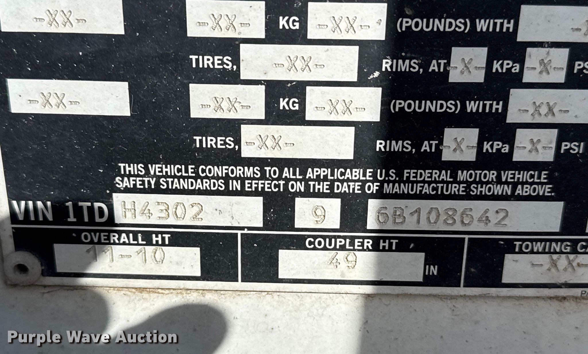 2006 Timpte grain trailer. VIN: 1TDH430296B108642. Dimensions Overall Length: 43', Width: 102", Side height: 94". Features Body type: Aluminum, Hoppers: Double Trap gates: Manual, Roll tarp. Chassis Landing gear: Dual, Suspension: Air, Brakes: Air, Axles: Tandem. Tires Aluminum wheels, Size: 11R24.5. Notes Semi not included, Hole in hopper, Landing gear damaged, bent. Kansas title. Title distribution may be delayed up to 30 days from verification of funds. Liberal, KS 67901