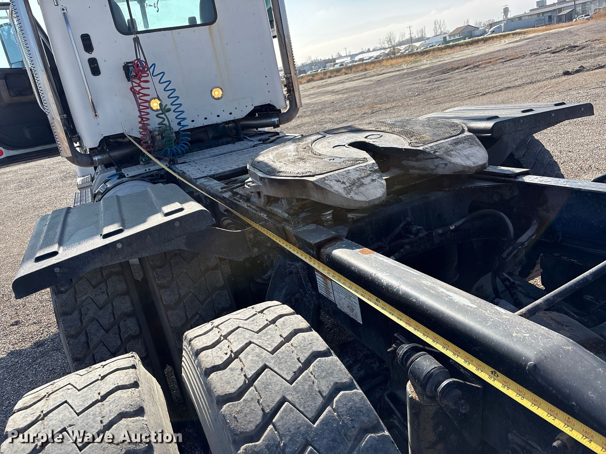 2013 Freightliner Coronado semi truck. Miles: 573,537 on odometer, Hours: 21,389 on meter, VIN: 1FUJGNDR9DDBL9785. Engine Detroit Diesel DD15, Displacement: 14.8L, Cylinders: 6, Fuel type: Diesel, HP: 560 HP, Engine brake. Transmission Eaton Fuller FRO-18210C, Manual, Speed: 10. Chassis Axles: Tandem, Gear ratio: 3.73, Differential lock: Inter-axle, Suspension: Air Dump valves, Brakes: Air, Truck chassis: 15' 4", GVWR: 53,300 lbs FAWR: 13,300 lbs, IAWR: 20,000 lbs, RAWR: 20,000 lbs, Wheelbase: 205". Interior AC, Heat, Power windows, Power locks, Cruise control, Air ride cab, Brake controller. Features Deck plate: Aluminum, Fifth wheel type: Air operated, Sliding, Fuel tank: Dual. Tires Size: 285/75R24.5. Notes PTO pump and hardware missing, PTO switch disconnected, Non-operational power windows, power locks. Utah title. Title distribution may be delayed up to 30 days from verification of funds. Hadco Construction. Lehi, UT 84043