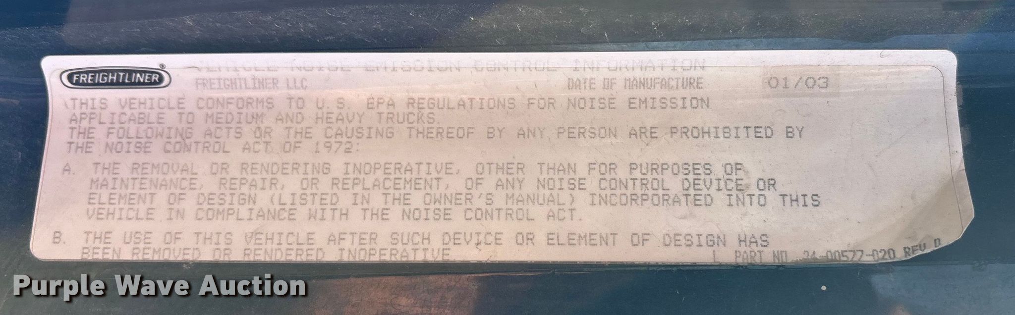 Take a look at this used 2003 Freightliner Columbia semi truck being sold on January 22nd, 2026 in the Thursday January 22 Truck and Trailer Auction made by Freightliner. Take a look at all of the item information below or take a look at similar auctions for Trucks.