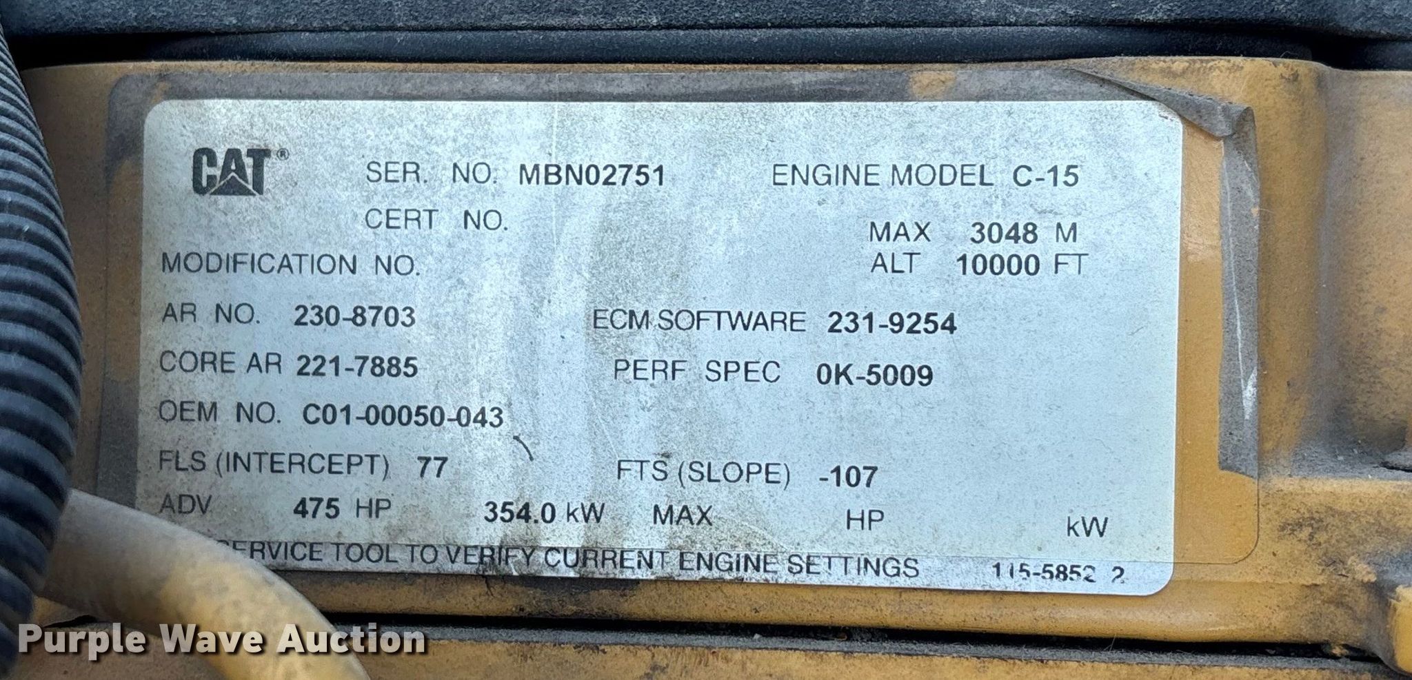 2003 Freightliner Columbia semi truck. Miles: 308,192 on odometer, Hours: 9,350 on meter, VIN: 1FUJA6AV23LL77407. Engine Model: Caterpillar C15, Cylinders: 6, Fuel type: Diesel, Engine brake. Transmission Eaton Fuller, Automated manual, Speed: 10. Chassis Axles: Tandem, Differential lock: Inter-axle, Suspension: Air, Brakes: Air, GVWR: 52,000 lbs FAWR: 12,000 lbs, RAWR: 20,000 lbs. Interior AC, Heat, Heated mirrors, Power windows, Cruise control, Air ride cab, Sleeper Sleeper length: 64", Beds: Double bunk, Refrigerator, Rear climate control. Features Deck plate: Aluminum, Fifth wheel type: Air operated, Sliding, Fuel tank: Dual. Tires Front: 275 80 R22.5, Rear: 295 75 R22.5. Notes Windshield chipped or cracked. Nebraska title. Title distribution may be delayed up to 14 days from verification of funds. Lottman & Carpenter Construction. Diller, NE 68342
