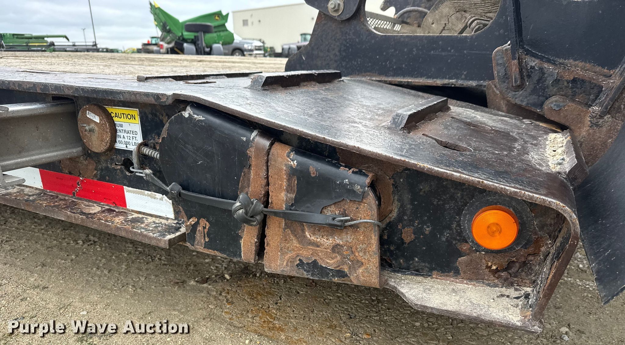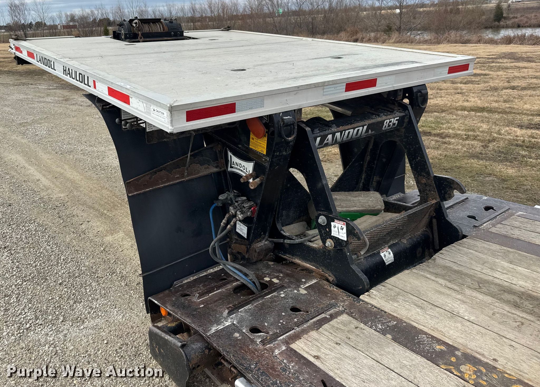 2014 Landoll Hauloll 835 lowboy equipment trailer. VIN: 1LH835WH3E1D20811, Unit #: CT5007. Dimensions Overall Length: 52' 8", Width: 102", Deck Length: 32' 4", Width: 102", Top deck length: 10' 4", Rear deck length: 7' 10" Length: 24". Features Deck type: Aluminum, Steel, Wood, Outriggers: Pull-out, Neck type: Detachable, Winch Braden AMU7-14, Hydraulic controls: Manual. Chassis Suspension: Air, Brakes: Air, Axles: Tandem Detachable tag, GVWR: 88,000 lbs. Tires Aluminum wheels, Size: 255/70R22.5. Notes Semi truck not included, Overall length with flip axle: 57'6"L, Passenger side ramp extension damaged, Frame rust damage, holes. 2014 Landoll flip axle VIN: 1LHF35AG3E1020821. Dimensions Overall Length: 5' 2", Width: 102". Features Deck type: Aluminum. Chassis Suspension: Air, Brakes: Air, GVWR: 23,500 lbs, GAWR: 20,000 lbs. Tires Aluminum wheels, Size: 255/70R22.5. Lowboy equipment trailer: Kansas title. Title distribution may be delayed up to 14 days from verification of funds. Flip axle: Transfer of ownership documentation will be a bill of sale. AVE-PLP, Inc. McPherson, KS 67460