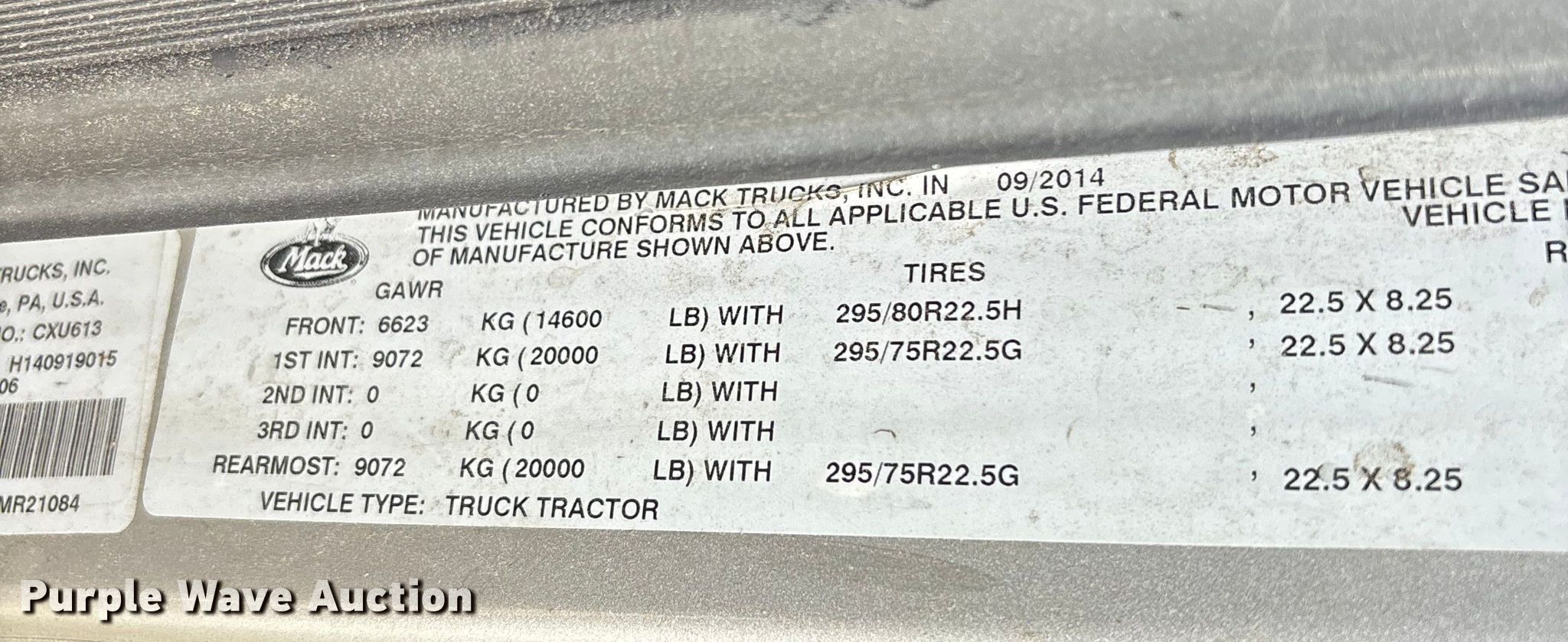 2015 Mack CX613 semi truck | Thursday January 22 Truck and Trailer Auction