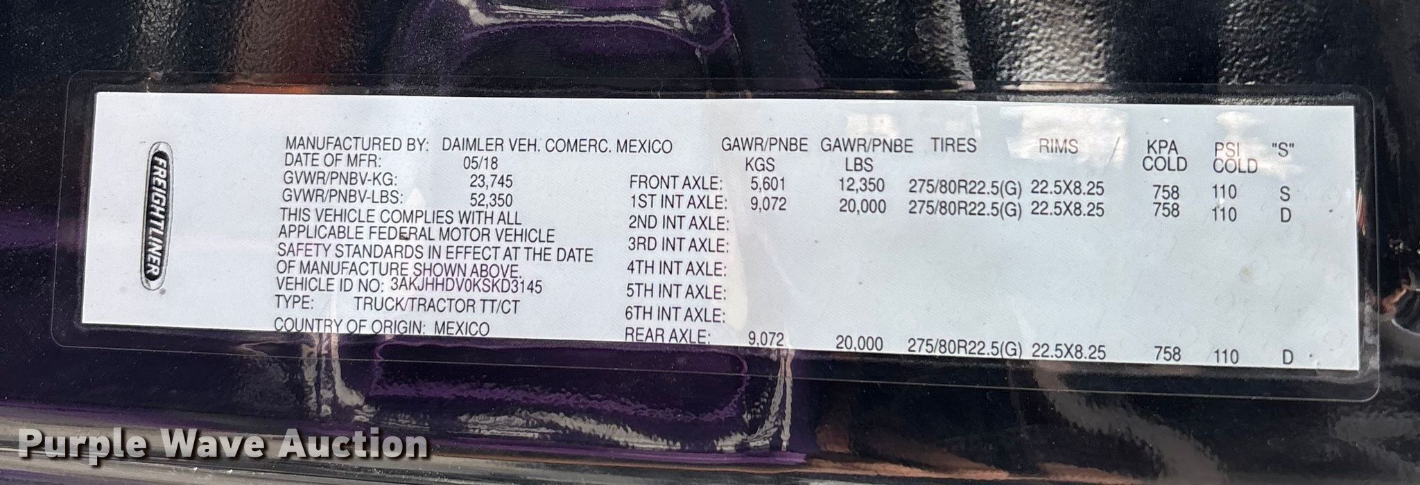 - VIN: 3AKJHHDV0KSKD3145