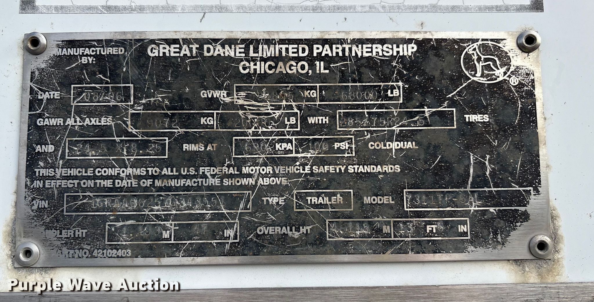 Purple Wave is selling a used Dry Van Trailer in Indiana. This item is a 2007 Great Dane 7311TP-SAL dry van trailer with the following: VIN: 1GRAA06257G343551, Unit #: 94095315