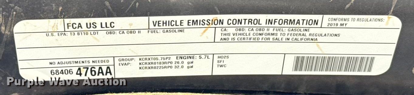 Purple Wave is selling a used 1/2 Ton Pickup or Van in Oklahoma. This item is a 2019 RAM 1500 Ext. Cab pickup truck with the following: Miles: 106,683 on odometer, VIN: 1C6RR7FT0KS609756
