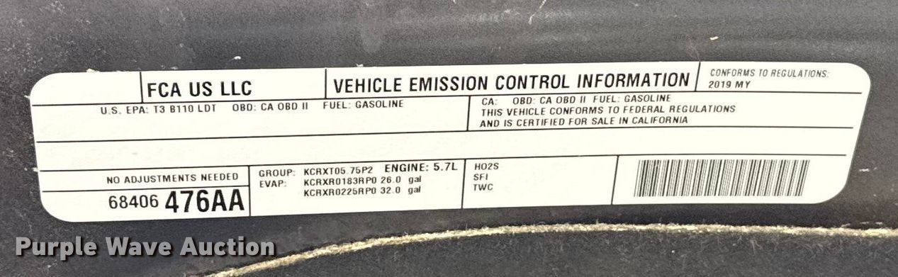 Purple Wave is selling a used 1/2 Ton Pickup or Van in Oklahoma. This item is a 2019 RAM 1500 Ext. Cab pickup truck with the following: Miles: 106,107 on odometer, VIN: 1C6RR7FT7KS609768