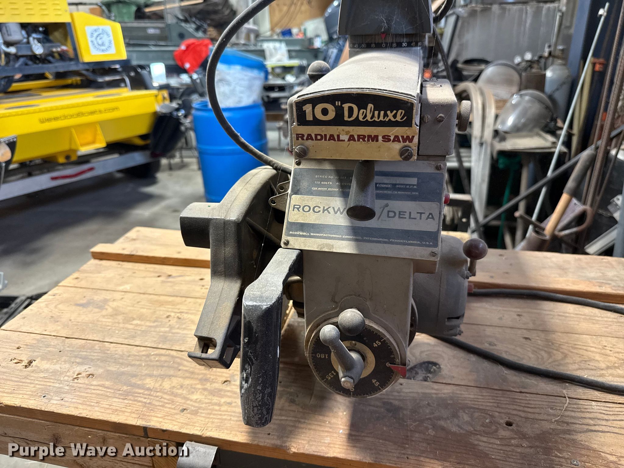 Purple Wave is selling a used Wood Saws in Oklahoma. This item is a Rockwell/Delta 10" Deluxe radial arm saw with the following: Phase: Single