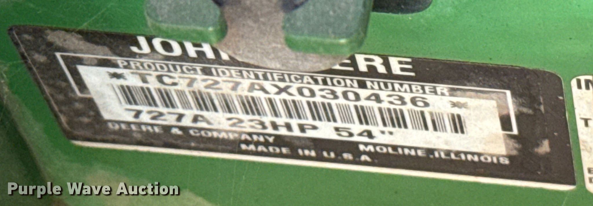 Purple Wave is selling a used Commercial Turf Mower in Oklahoma. This item is a John Deere 727A ZTR lawn mower with the following: Hours: Unknown, Cutting width: 54"