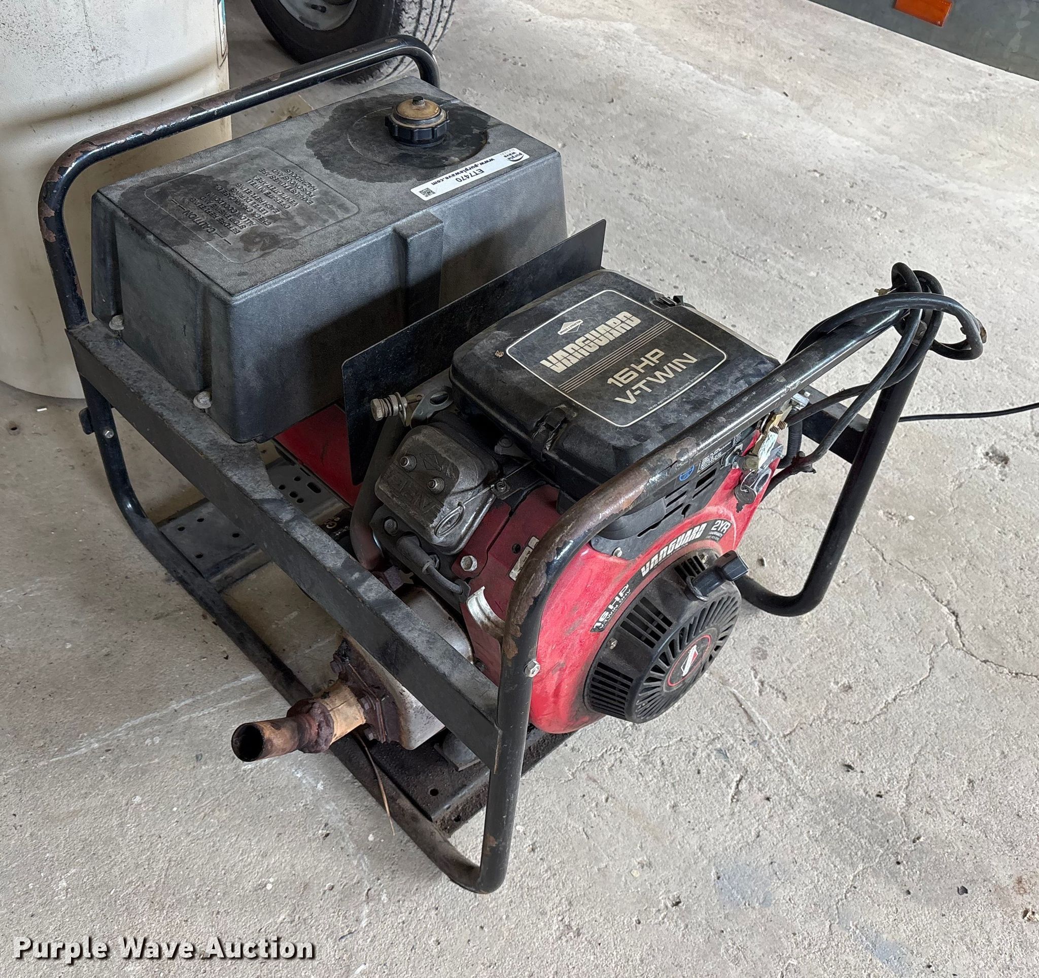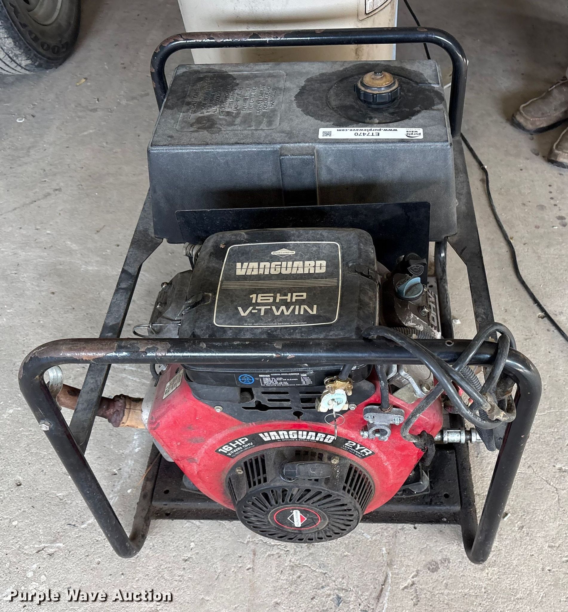 Briggs and Stratton generator. Serial: 55345. Engine Briggs & Stratton Vanguard, Cylinders: 2, Fuel type: Gas, HP: 16. Features Generator Phase: Single, Backup start, Electric start. Notes Non-operational unit. Oklahoma Department of Wildlife Conservation. 2021 Caddo Hwy. Caddo, OK 74729
