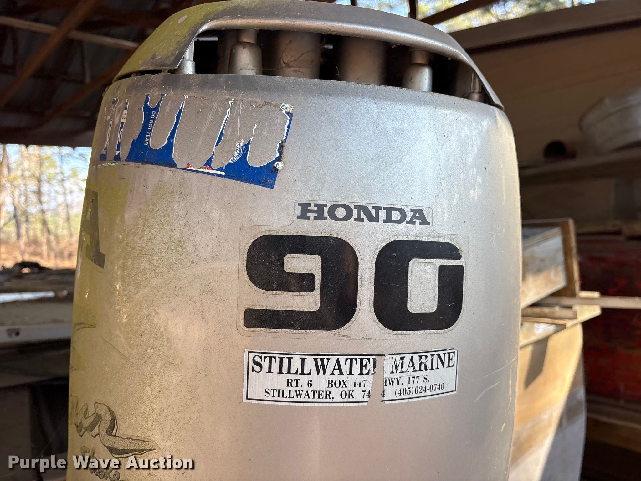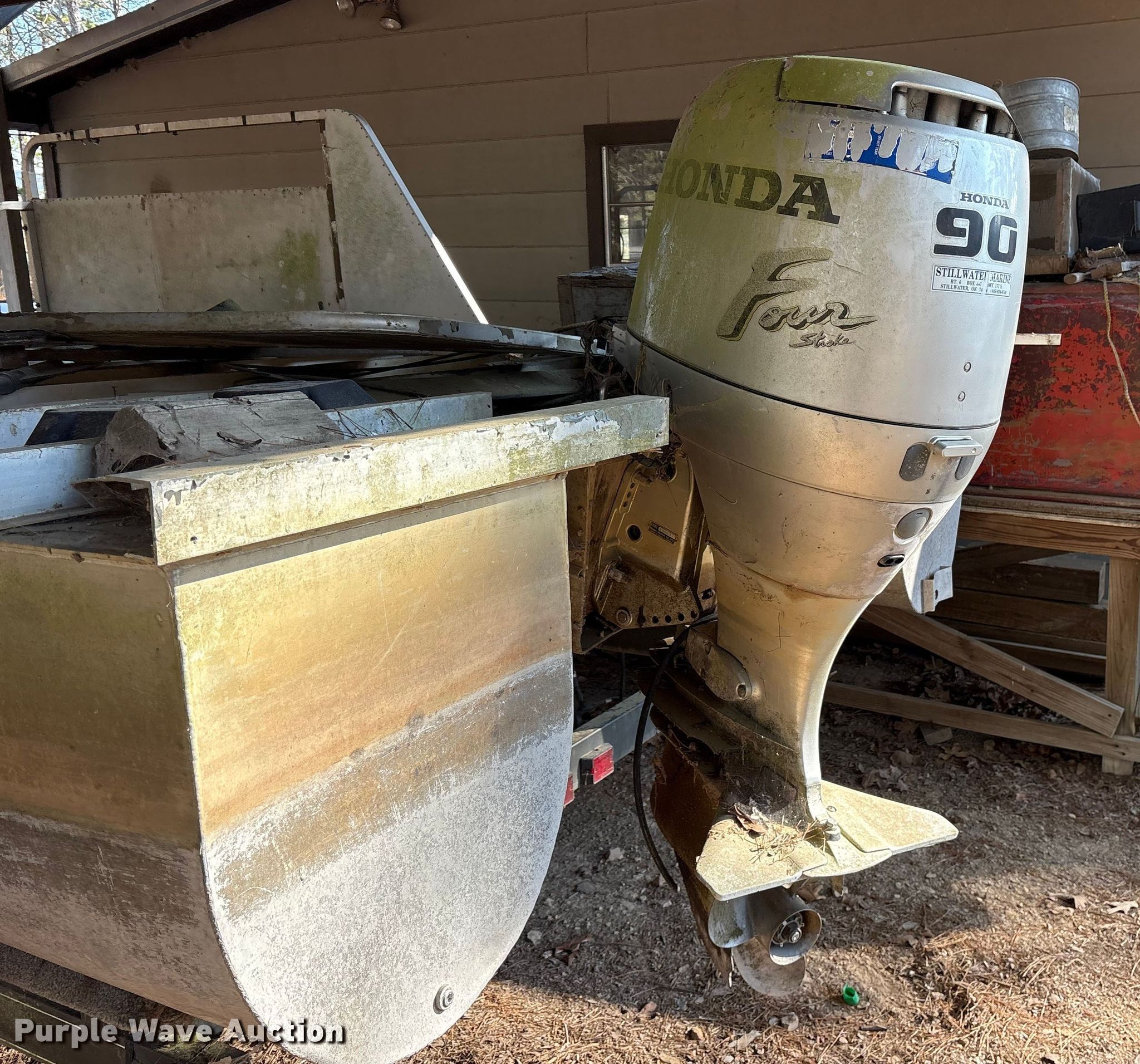 1992 Sundancer pontoon boat. Length: 20', Hull ID: FXK0326AF292. Engine Engine type: Outboard, 1996 Honda, Serial: BBBL-1002239, Cylinders: 4, Fuel type: Gas, HP: 90, Outdrive Propeller: Stainless steel. Trailer 1992 B&M Manufacturing PT206, VIN: 19BEK1210NCB20072, Overall length: 24', Overall width: 99", Ball hitch size: 2", Axles: Single, Tire size: 5.30-12. Notes Batteries missing, Key not included, Non-operational engine , Operators station missing, Tires damaged, dry rot, Tires flat, Non-operational unit. Boat- Oklahoma title. Motor- Oklahoma title. Trailer- Transfer of ownership documentation will be a bill of sale. Title distribution may be delayed up to 14 days from verification of funds.. Oklahoma title. Transfer of ownership documentation will be a bill of sale. Oklahoma Department of Wildlife Conservation. Broken Bow, OK 74728