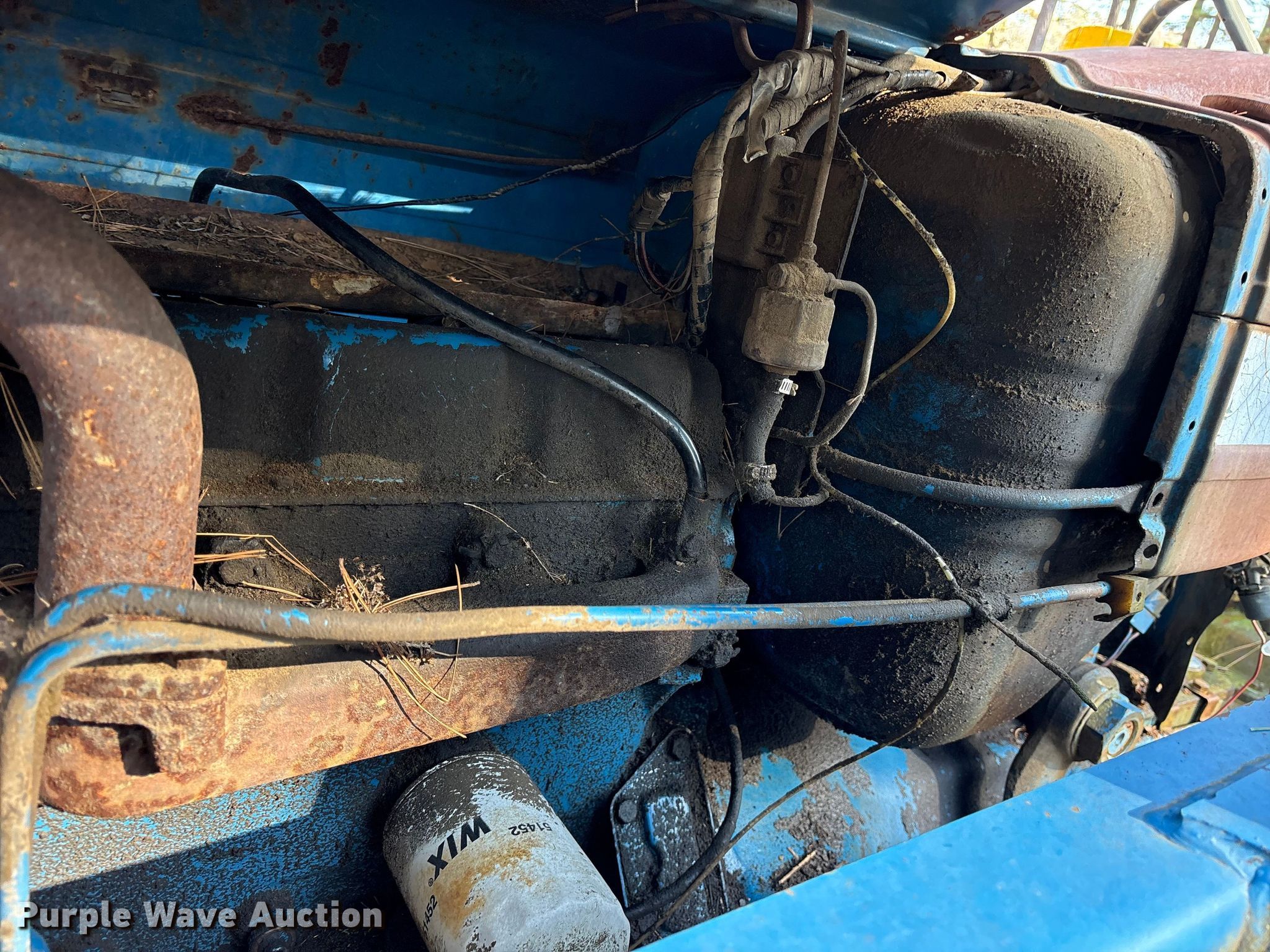 Ford 6600 tractor. Hours: Unknown, Serial: C551936. Engine Ford EA214C, Cylinders: 4, Fuel type: Diesel. Transmission Manual, 8F - 2R, Differential lock. Features PTO: 540, Three point Top link, Hydraulic remote sets Rear: 1, Loader New Holland 7210, Controls: Joystick, Bucket Width: 72", Rotary mower Width: 5'. Tires Front: 7.50-10SL, Rear: 18.4-30. Notes Battery missing, Non-operational unit. Oklahoma Department of Wildlife Conservation. 7963 Sherwood Rd. Broken Bow, OK 74728