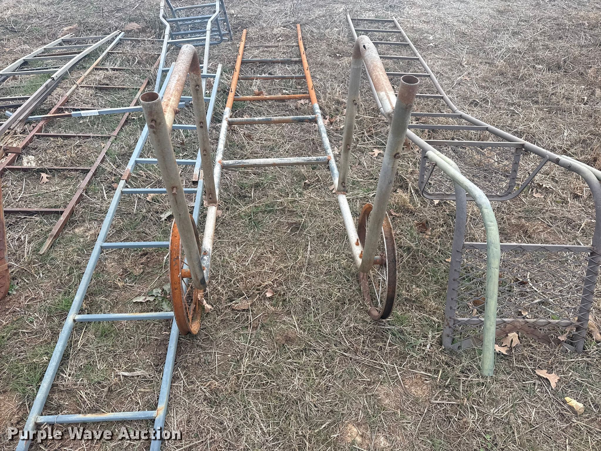 Purple Wave is selling a used Sporting Goods in Oklahoma. This item is a (5) ladder stands with the following: Approx. 9'