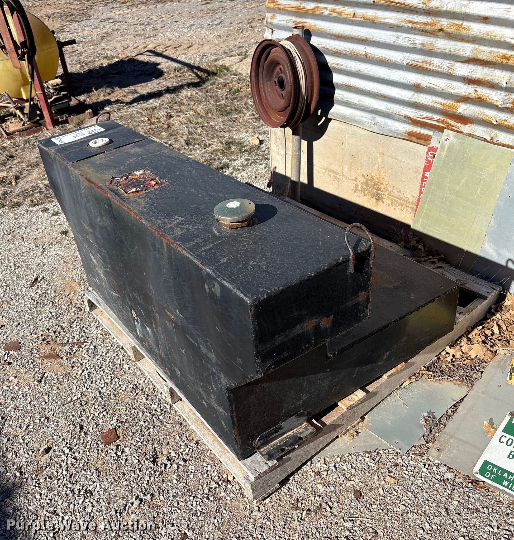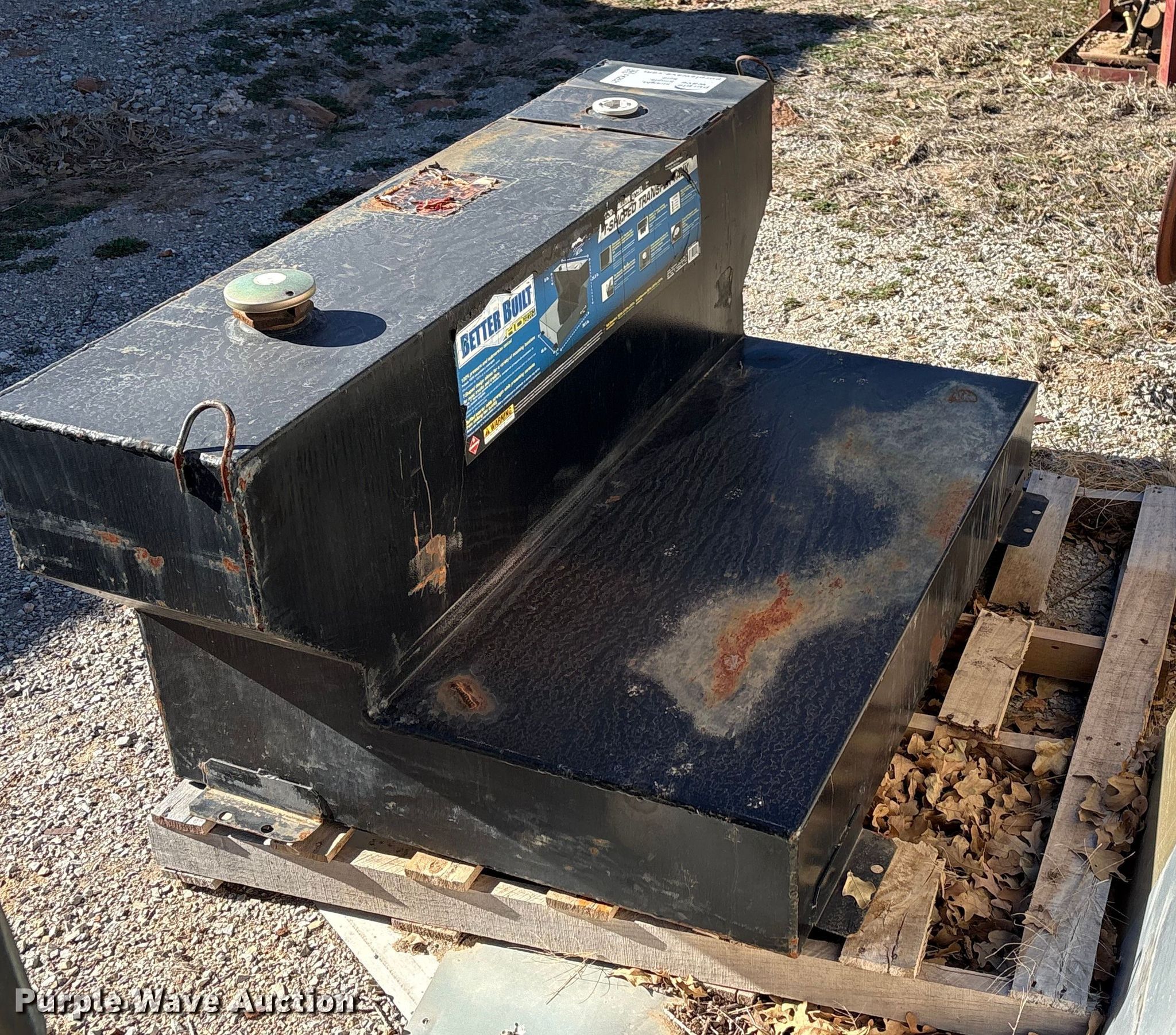 Purple Wave is selling a used Fuel and Lube in Oklahoma. This item is a Better Built fuel tank with the following: 39" L x 59" W, Capacity: 100 gallons