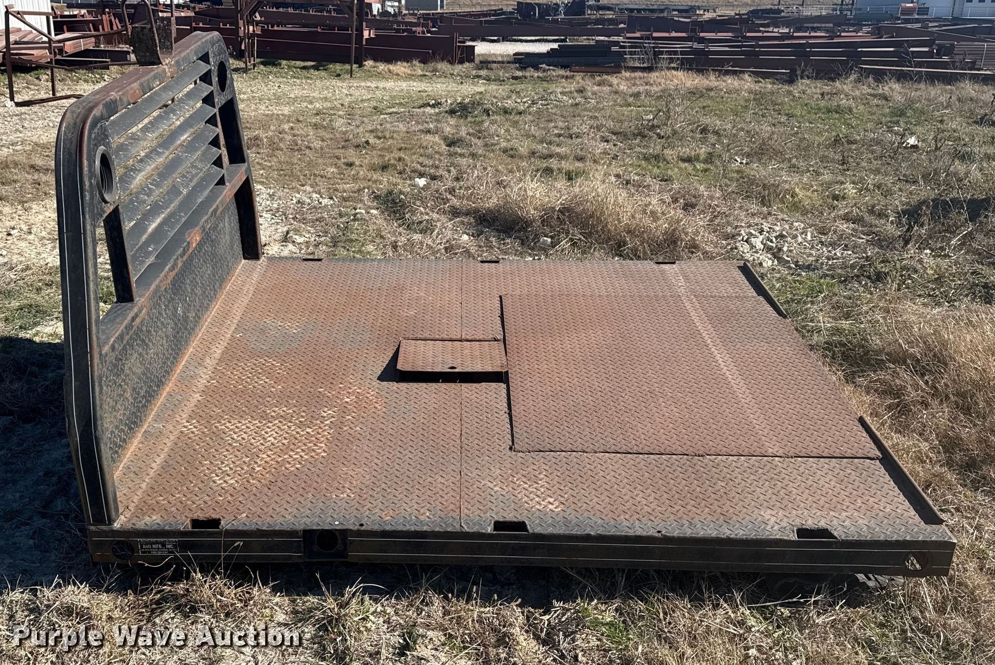 Purple Wave is selling a used Truck Part and Attach. in Oklahoma. This item is a Butler Welding & Mfg flat bed with the following: Bed, Flatbed, Length: 86", Width: 81", Bed type: Steel