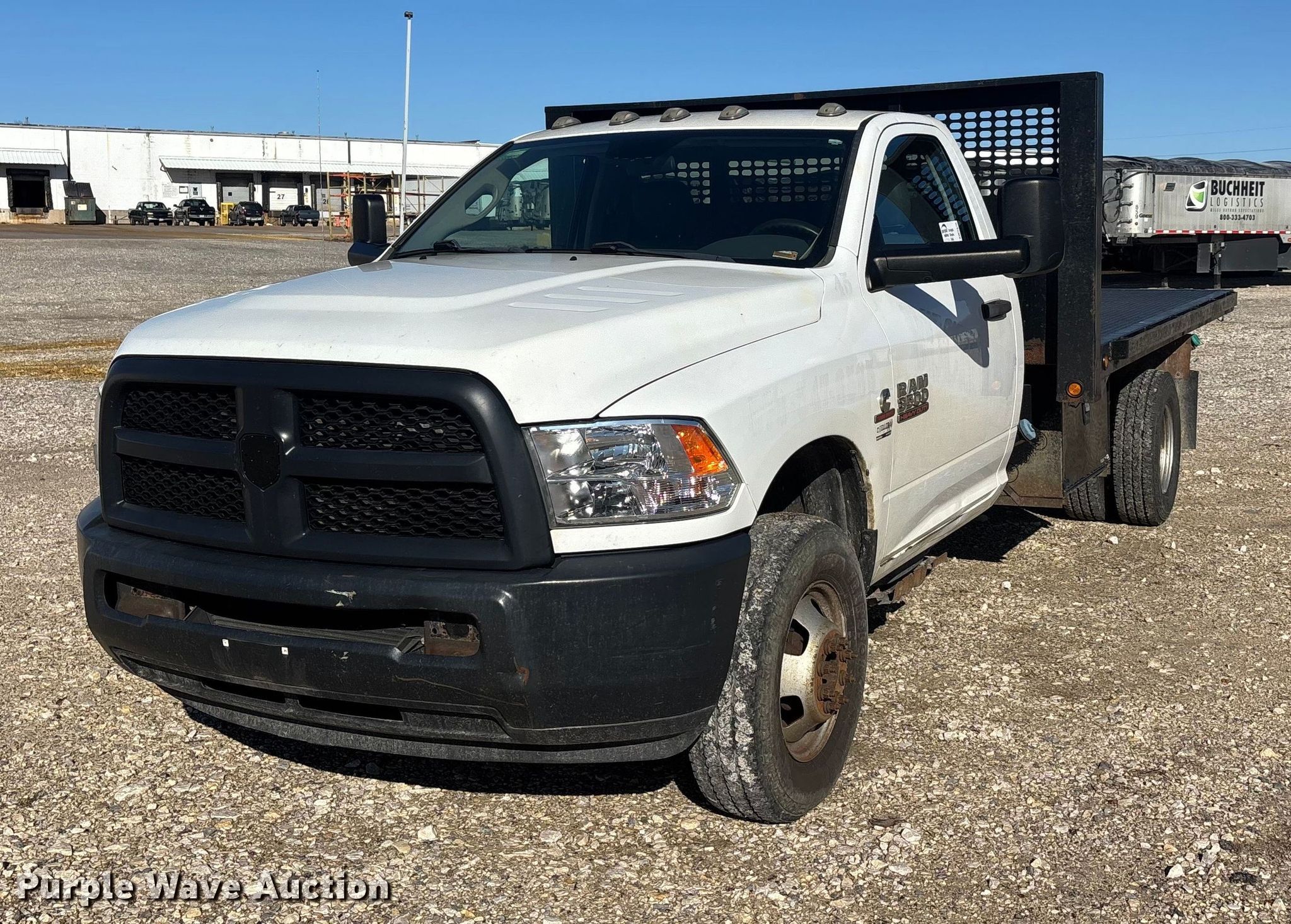 2015 RAM 3500 dump flatbed pickup truck. Miles: 279,667 on odometer, VIN: 3C7WRTBL7FG602989, Unit #: 45. Engine Displacement: 6.7L, Cylinders: 6, Fuel type: Diesel. Transmission Automatic, Four wheel drive. Interior AC, Heat, Cruise control, Auxiliary controls, Brake controller. Features Bed Dump flatbed, CM, Length: 12' 2", Width: 8' 5", Ram: Single. Tires Size: 235/80R17. Notes Dash warning indicator: Check engine, Windshield chipped or cracked. Missouri title. Title distribution may be delayed up to 14 days from verification of funds. Buchheit Logistics. Scott City, MO 63780