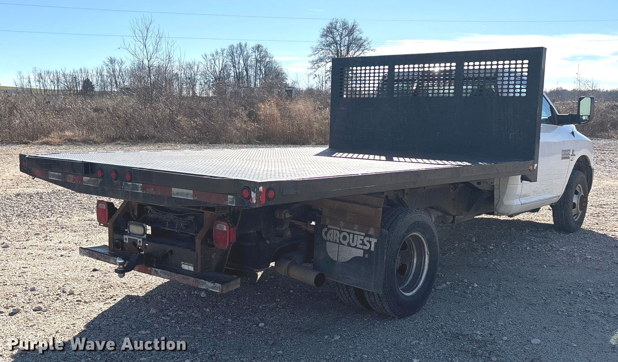 This 2015 RAM 3500 dump flatbed pickup truck will sell to the highest bidder regardless of price.