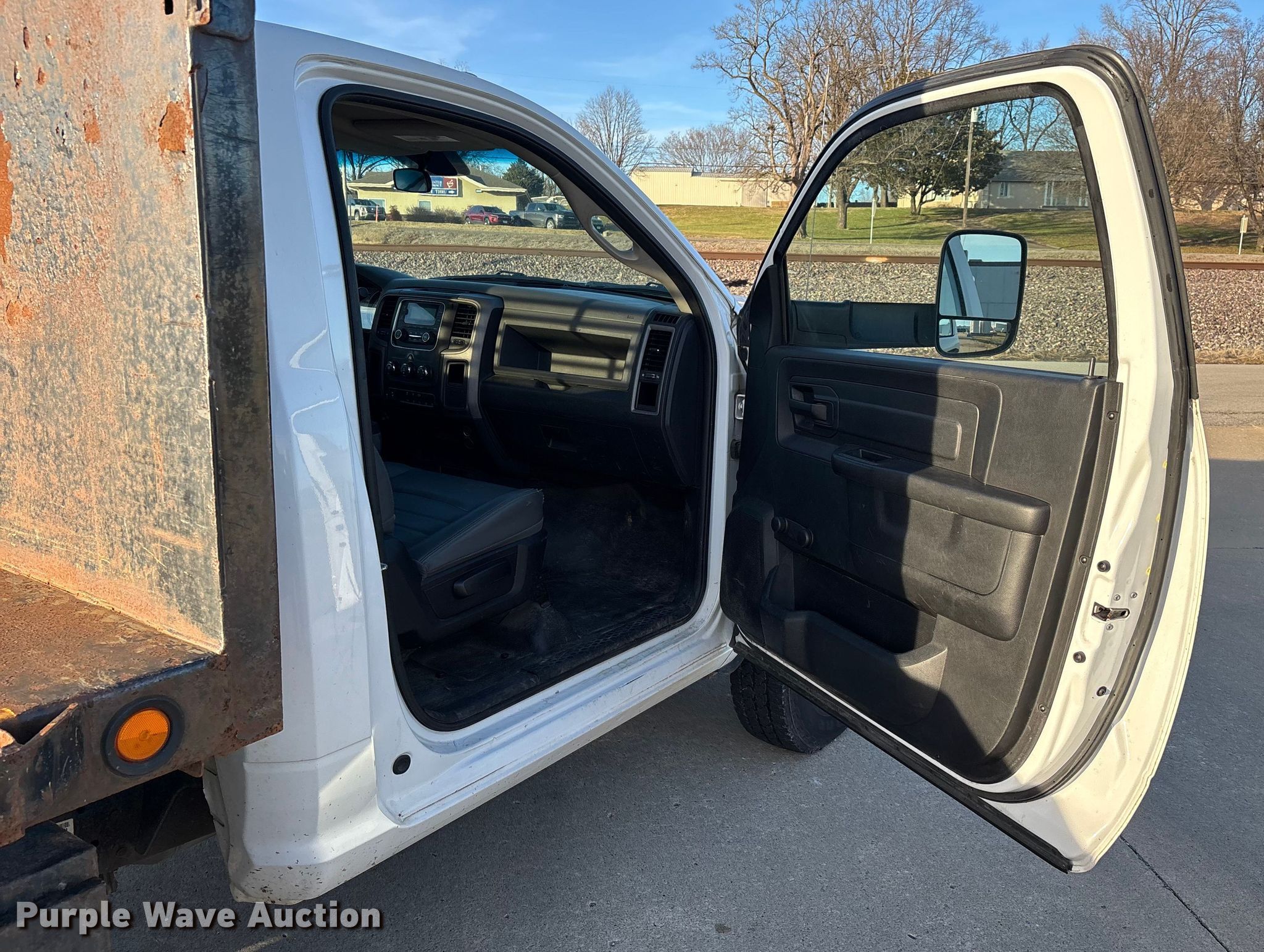 2017 RAM 3500 dump flatbed pickup truck. Miles: 317,933 on odometer, VIN: 3C7WRTBL2HG719785, Unit #: 28. Engine Displacement: 6.7L, Cylinders: 6, Fuel type: Diesel. Transmission Automatic, Four wheel drive. Interior AC, Heat, Cruise control, Auxiliary controls, Brake controller. Features Bed Dump flatbed, Length: 12' 2", Width: 8' 5". Tires Size: 235/80R17. Notes Dash warning indicator: Check engine. Missouri title. Title distribution may be delayed up to 14 days from verification of funds. Buchheit Logistics. Scott City, MO 63780