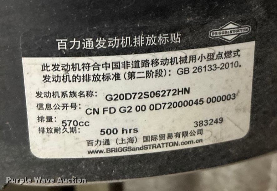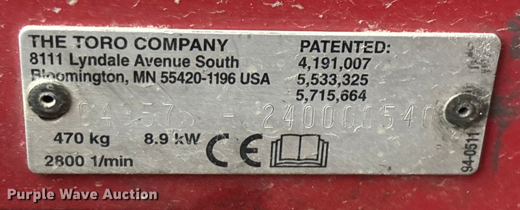 Toro Greensmaster 3150 reel mower. Hours: 3,456 on meter, Serial: 240000540. Engine Briggs & Stratton Vanguard, Serial: 2012023696993, Displacement: 570 CC, Cylinders: 2, Fuel type: Gas, HP: 18. Transmission Hydrostatic. Features Hydraulic front deck lift. Tires Size: 18x9.50-8. Walnut Grove, MO 65770