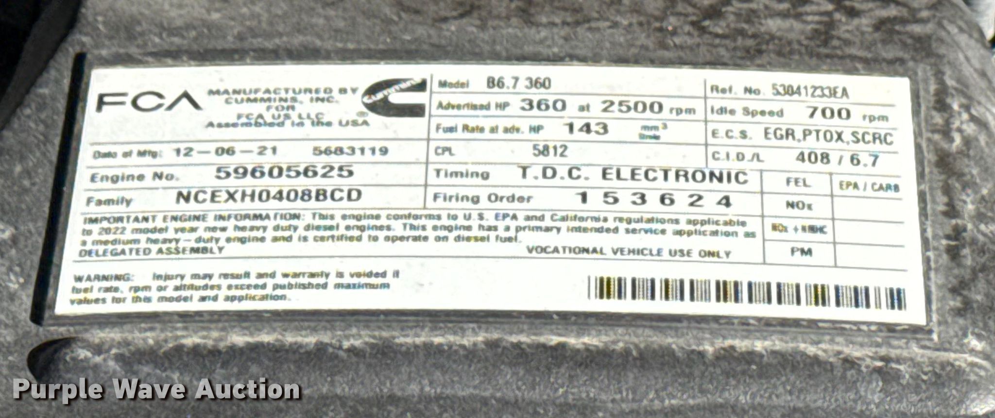 Take a look at this used 2022 RAM 5500 roll-off container truck being sold on January 28th, 2026 in the Wednesday January 28 Vehicles and Equipment Auction made by RAM. Take a look at all of the item information below or take a look at similar auctions for Trucks.
