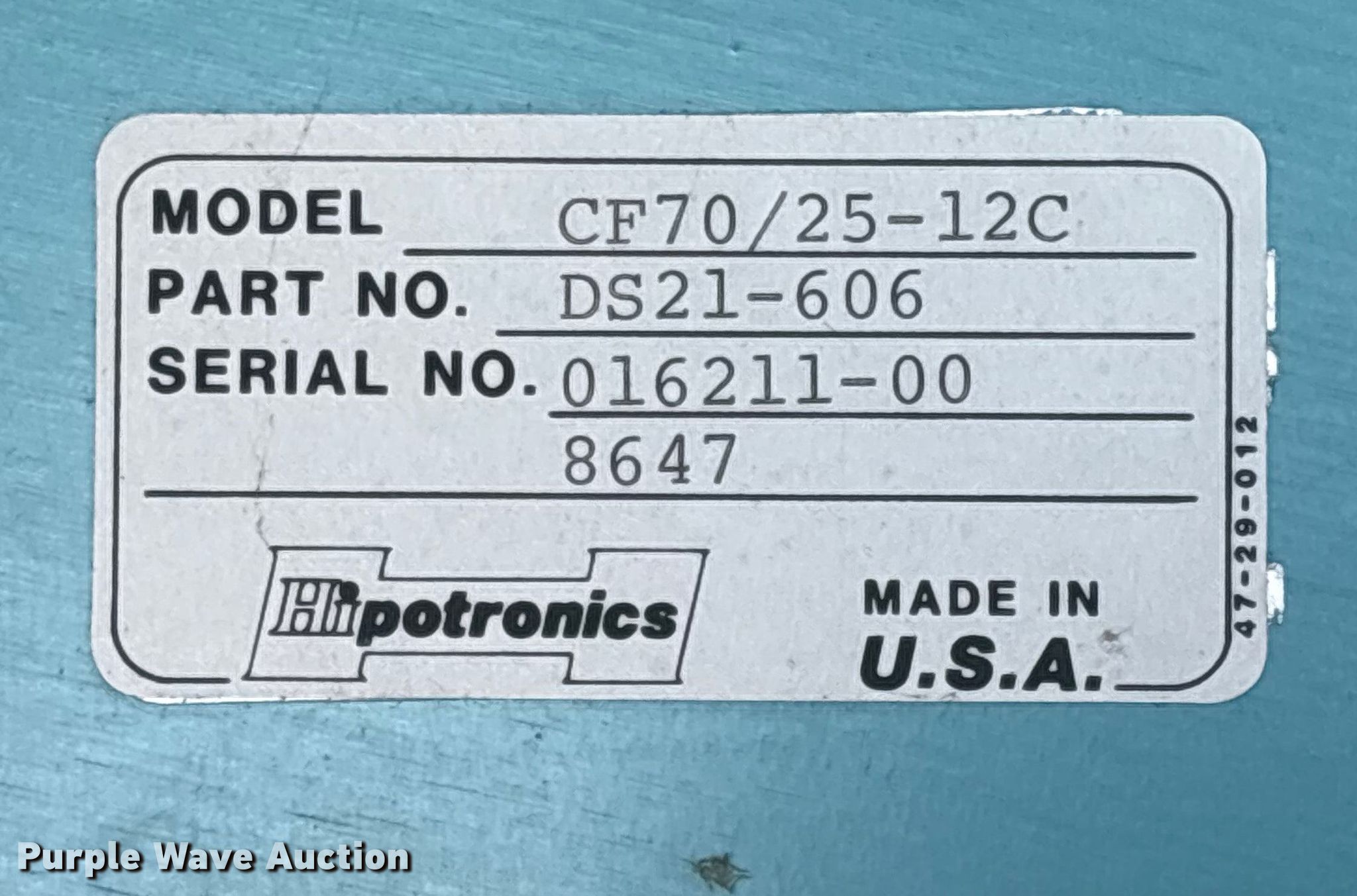 Take a look at this used Hiportronics CF70//25-12C Underground Fault Tester being sold on January 28th, 2026 in the Wednesday January 28 Vehicles and Equipment Auction made by Hiportronics. Take a look at all of the item information below or take a look at similar auctions for Shop Tools.