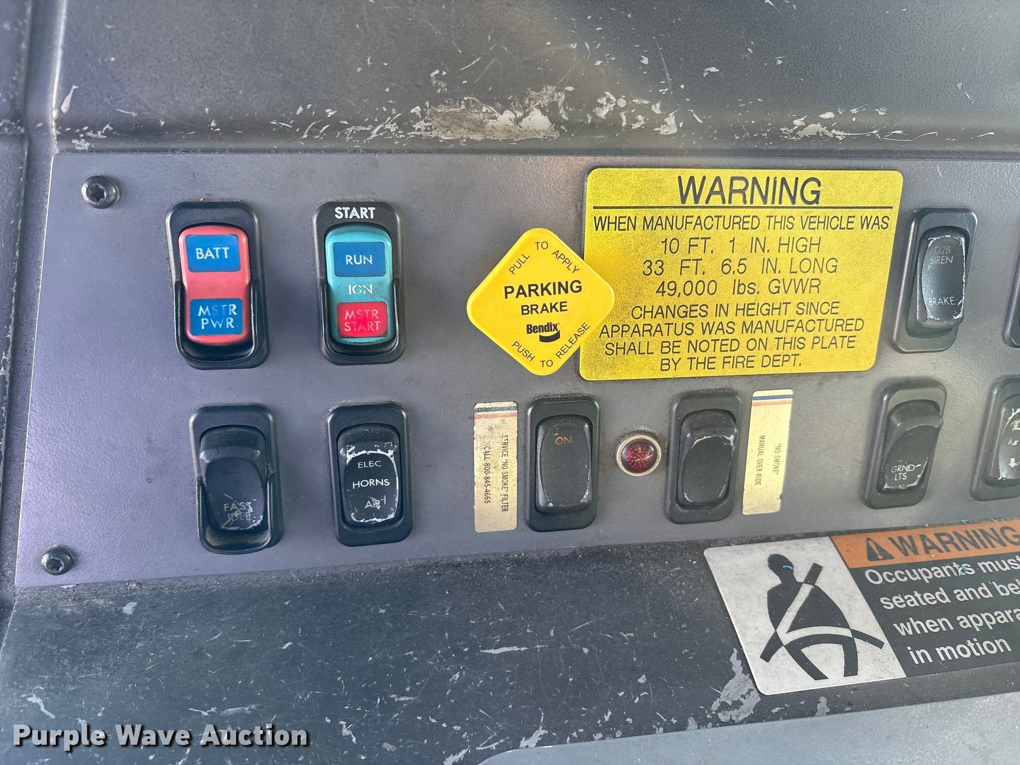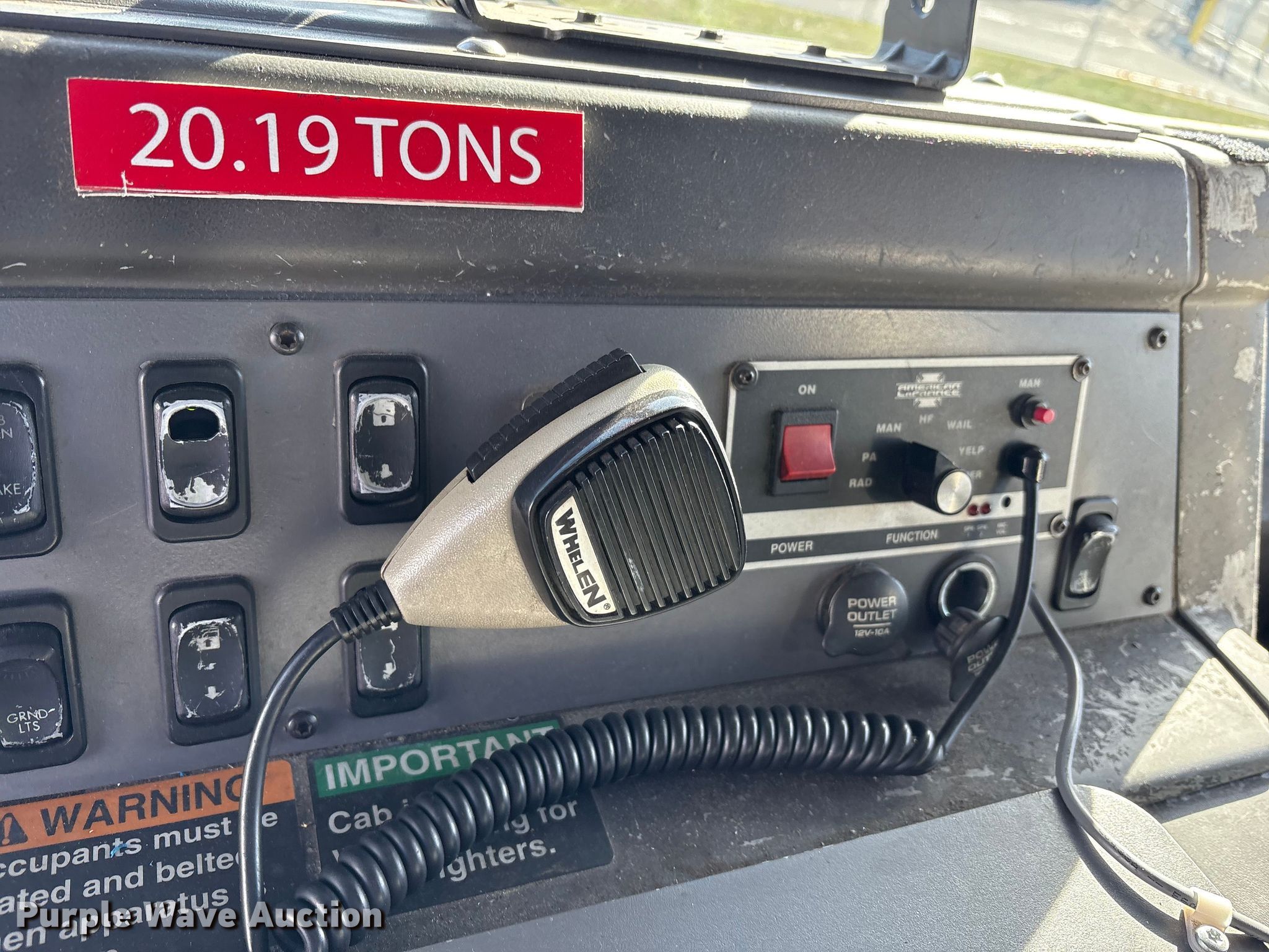 2007 American LaFrance Metropolitan pumper fire truck. Miles: 95,501 on odometer, Hours: 8,252 on meter, VIN: 1AFAADCY77RU45613. Engine Cummins ISL, Displacement: 8.9L, Cylinders: 6, Fuel type: Diesel. Transmission Allison, Automatic. Chassis Axles: Single, Suspension: Air, Brakes: Air, GVWR: 49,000 lbs. Interior AC, Heat, Heated mirrors, Power windows, Auxiliary controls. Features Fire truck body Pump 1,260 gpm, PA/ siren controls. Tires Size: 315/80R22.5. Notes Unknown operating condition of pumps, freeze damage, Pump electrical issues. Indiana title. Title distribution may be delayed up to 14 days from verification of funds. Spring Valley, WI 54767