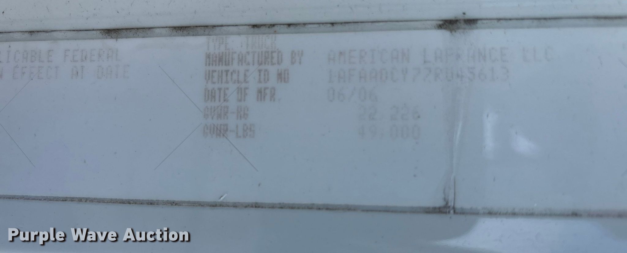 Purple Wave is selling a used Fire Truck or Emergency Vehicle in Wisconsin. This item is a 2007 American LaFrance Metropolitan pumper fire truck with the following: Miles: 95,501 on odometer, Hours: 8,252 on meter, VIN: 1AFAADCY77RU45613