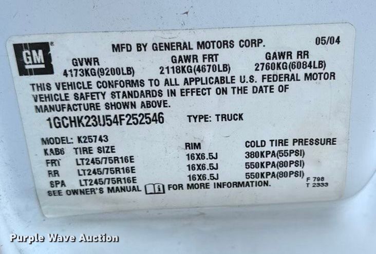 - VIN: 1GCHK23U54F252546