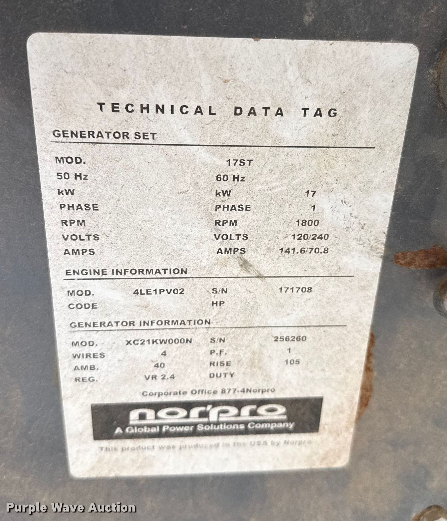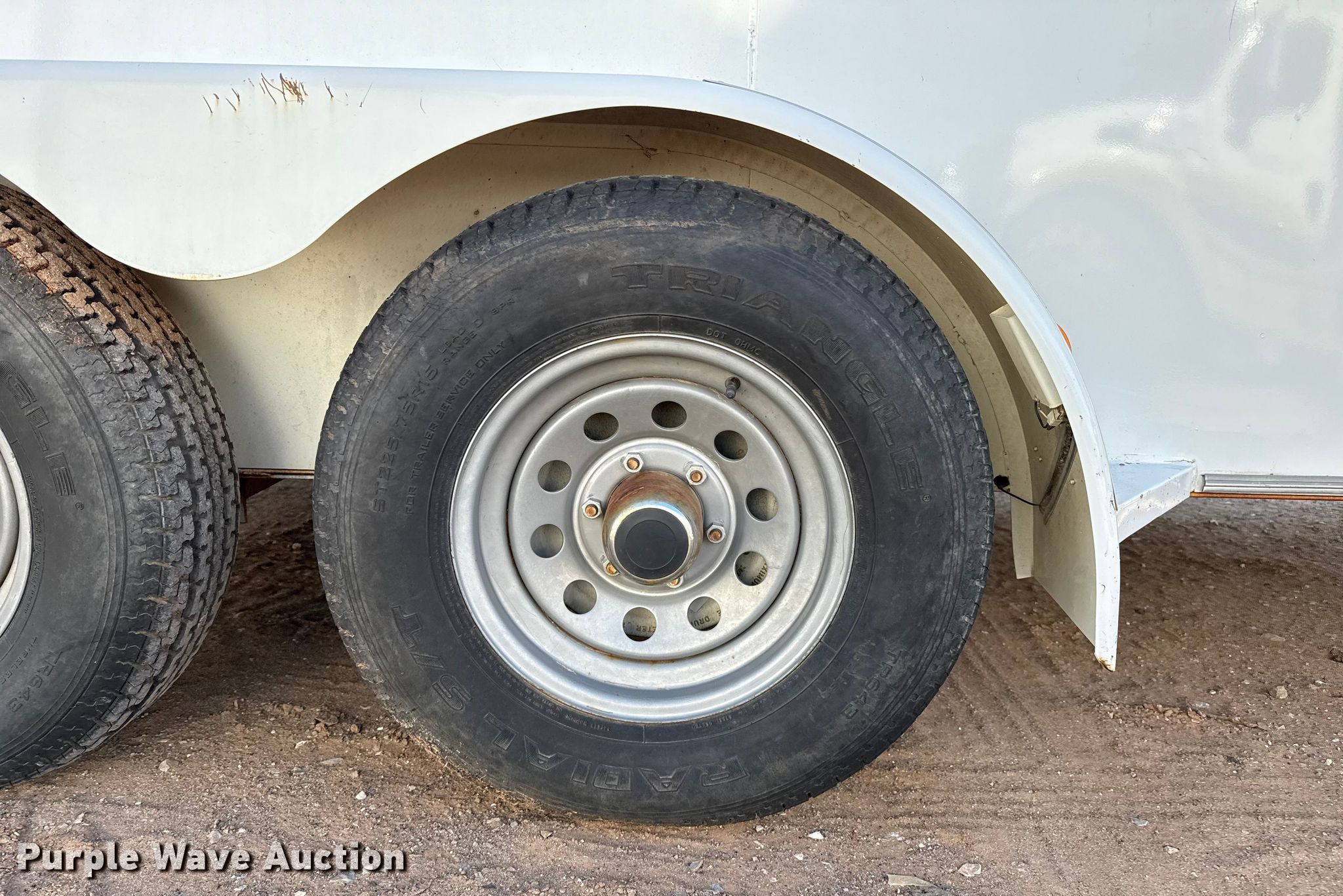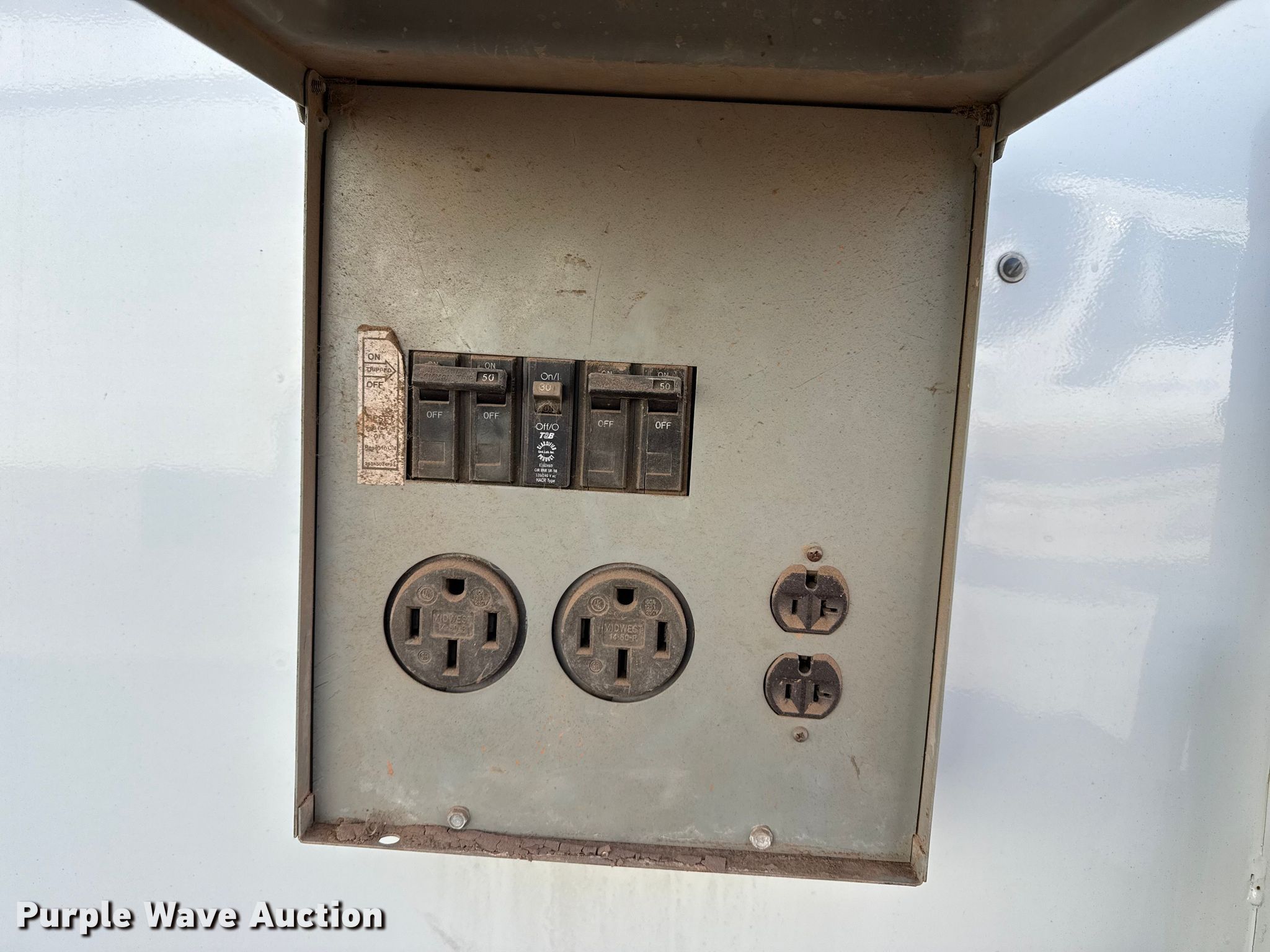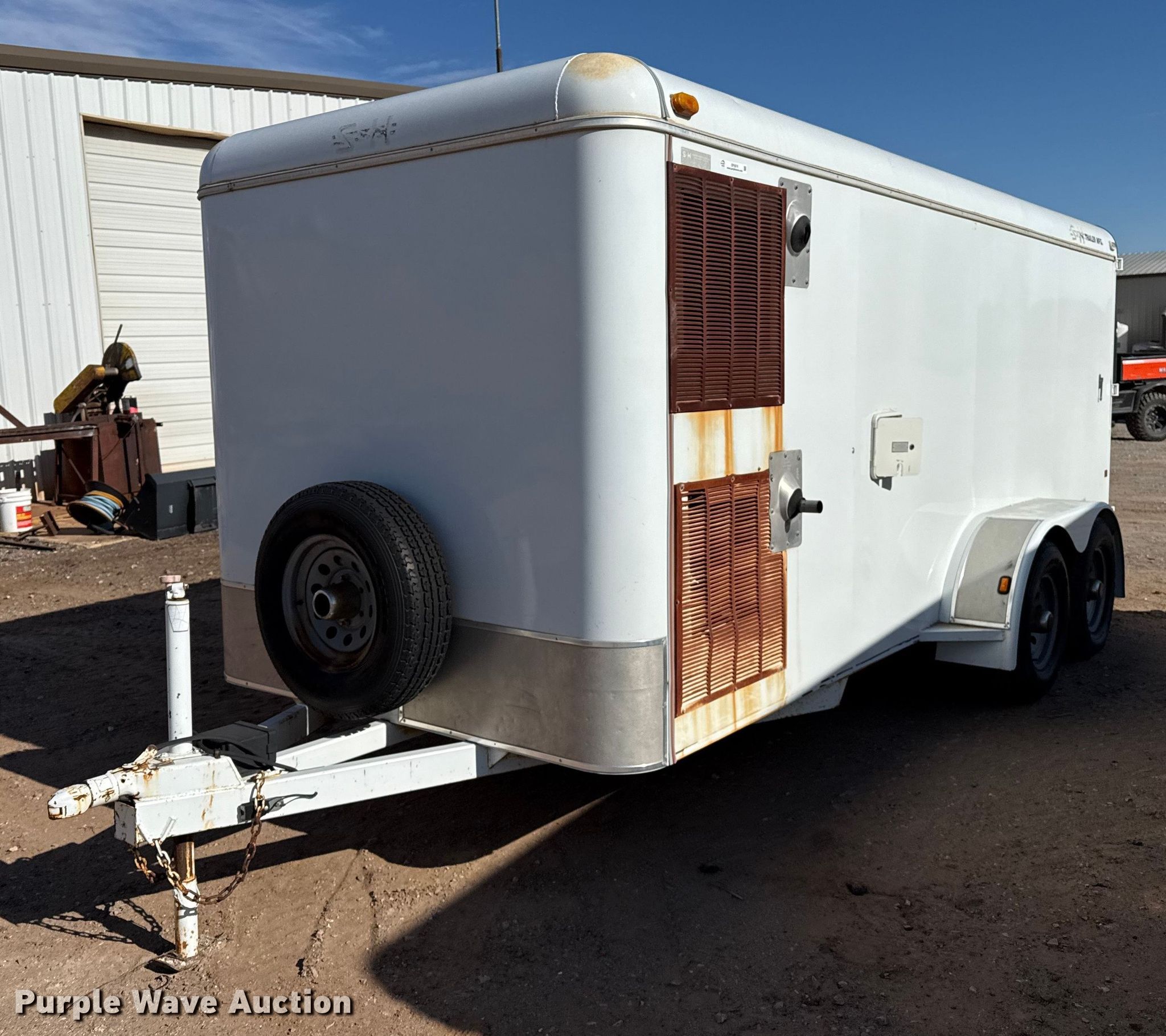 2003 S&H enclosed cargo trailer. VIN: 140KB12D13A046982. Dimensions Overall Length: 19' 6", Width: 98", Body Length: 16', Width: 74". Features Deck type: Wood, Generator Norpro, Hours: 2,677 on meter, Fuel type: Diesel, kW: 17. Chassis Ball hitch: 2 5/16", Landing gear: Single, Suspension: Spring, Axles: Tandem. Tires Steel wheels, Size: 225/75R15. Oklahoma title. Title distribution may be delayed up to 30 days from verification of funds. Woodward, OK 73801