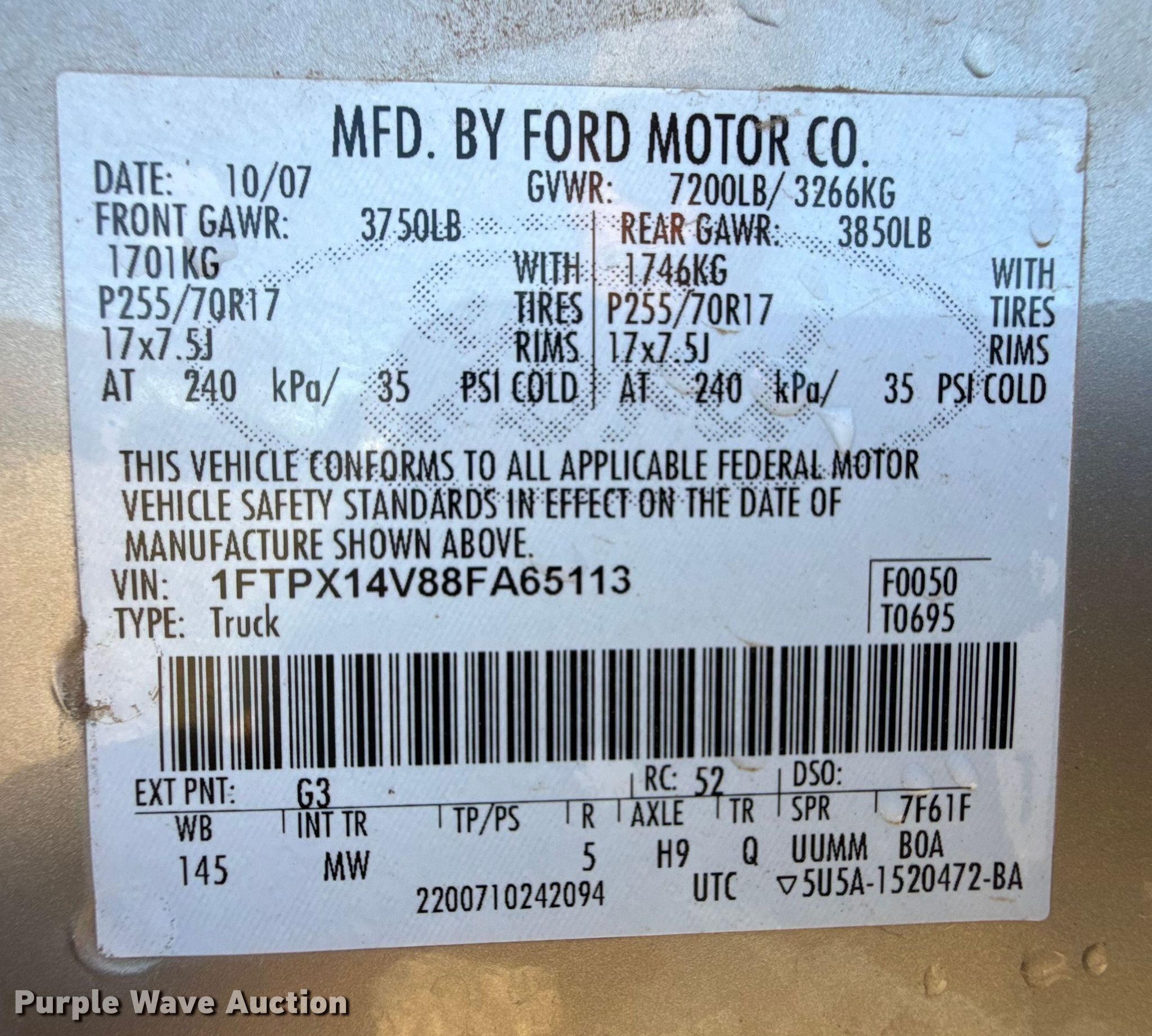 - VIN: 1FTPX14V88FA65113