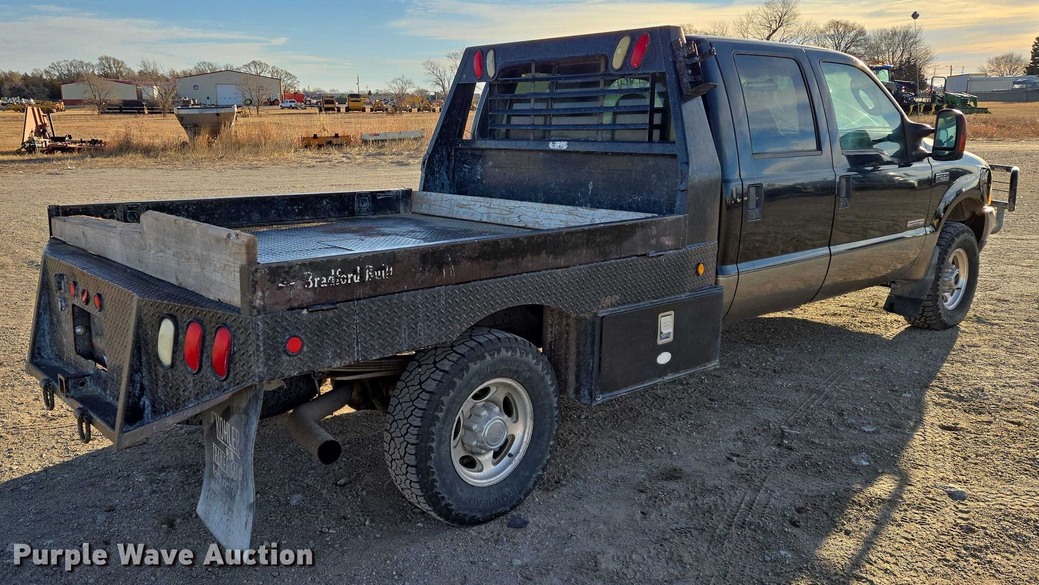 2004 Ford F350 Super Duty Crew Cab flatbed truck. Miles: 241,743 on odometer, VIN: 1FTSW31P34EE04178. Engine Displacement: 6.0L, Cylinders: 8, Fuel type: Diesel. Transmission Automatic, Four wheel drive. Interior AC, Heat, Seat: Heated, Power driver, Power passenger, Heated mirrors, Power windows, Power locks, Cruise control, Brake controller, Powered sunroof. Features Bed Flatbed, Bradford Built, Length: 8' 6", Width: 84", Hitch: Gooseneck. Tires Size: 265/75R16. Notes Dash warning indicator: ABS, Dash warning indicator: Water in fuel, Windshield chipped or cracked. Nebraska title. Title distribution may be delayed up to 14 days from verification of funds. Kirk Barnes Const. Inc.. Valentine, NE 69201