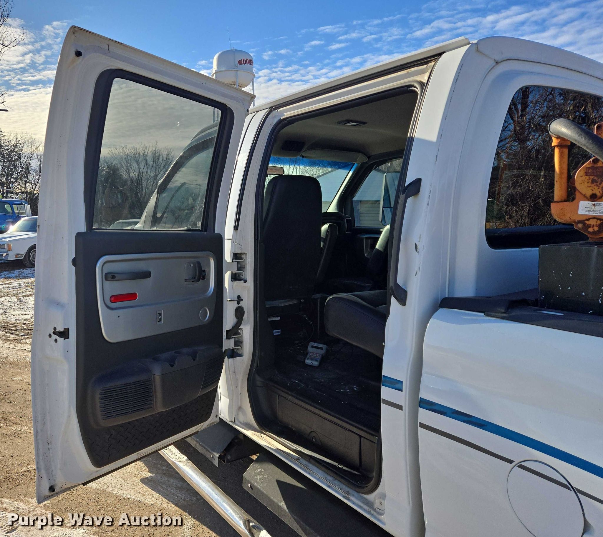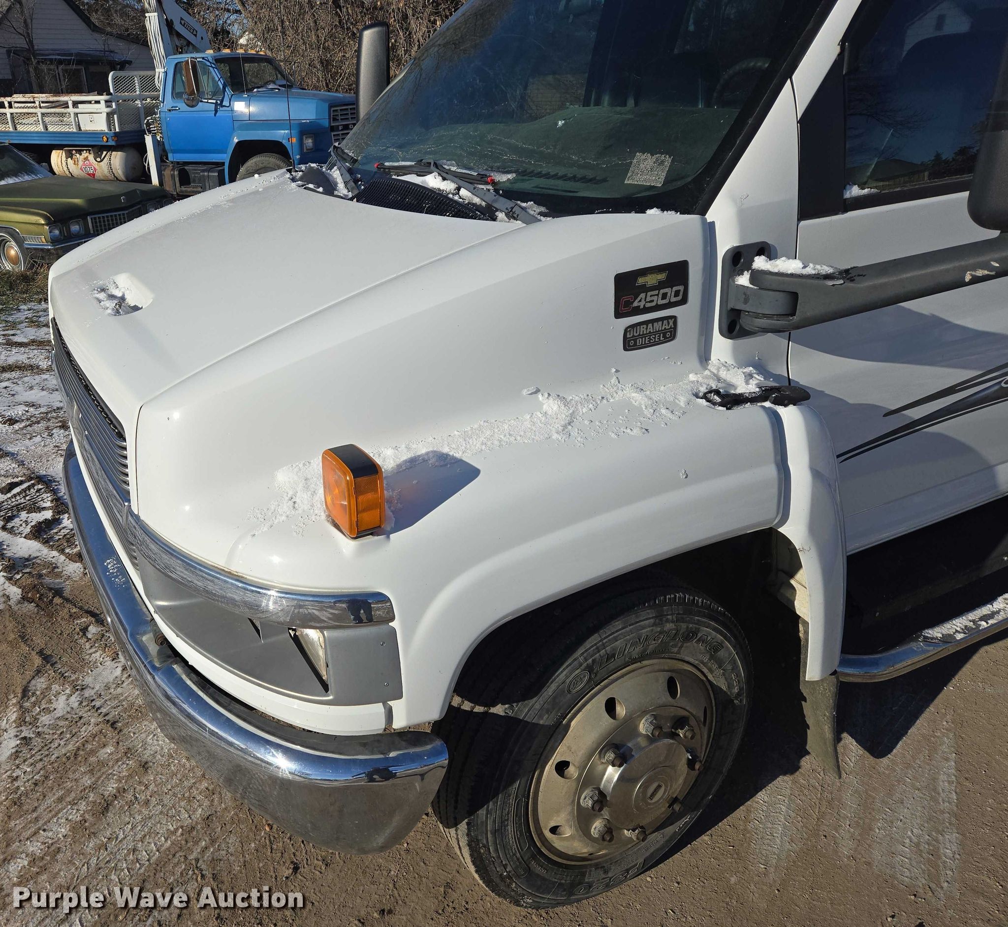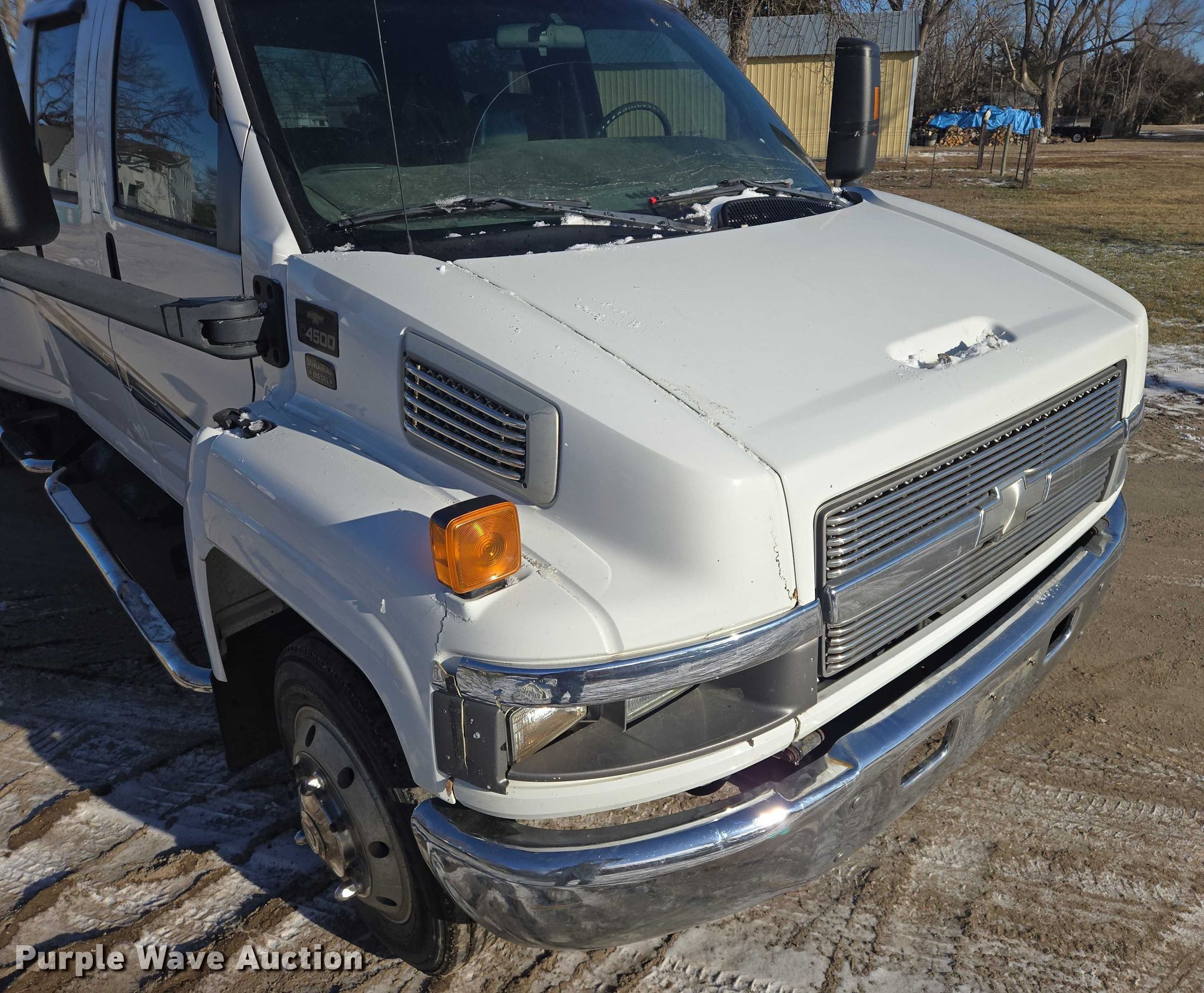 2004 Chevrolet C4500 Crew Cab pickup truck. Miles: Unknown, VIN: 1GBE4E1124F508623. Engine Displacement: 6.6L, Cylinders: 8, Fuel type: Diesel. Transmission Automatic. Interior AC, Heat, Heated mirrors, Power windows, Power locks, Cruise control, Brake controller. Features Hitch: Fifth wheel plate, Gooseneck. Tires Size: 225/70R19.5. Notes Contents included, Windshield chipped or cracked, Jump start required during on-site data collection, Non-operational dash gauge cluster. South Dakota title. Mileage has not been verified. Exempt will be written in the odometer disclosure on the title. Title distribution may be delayed up to 14 days from verification of funds. Woonsocket, SD 57385
