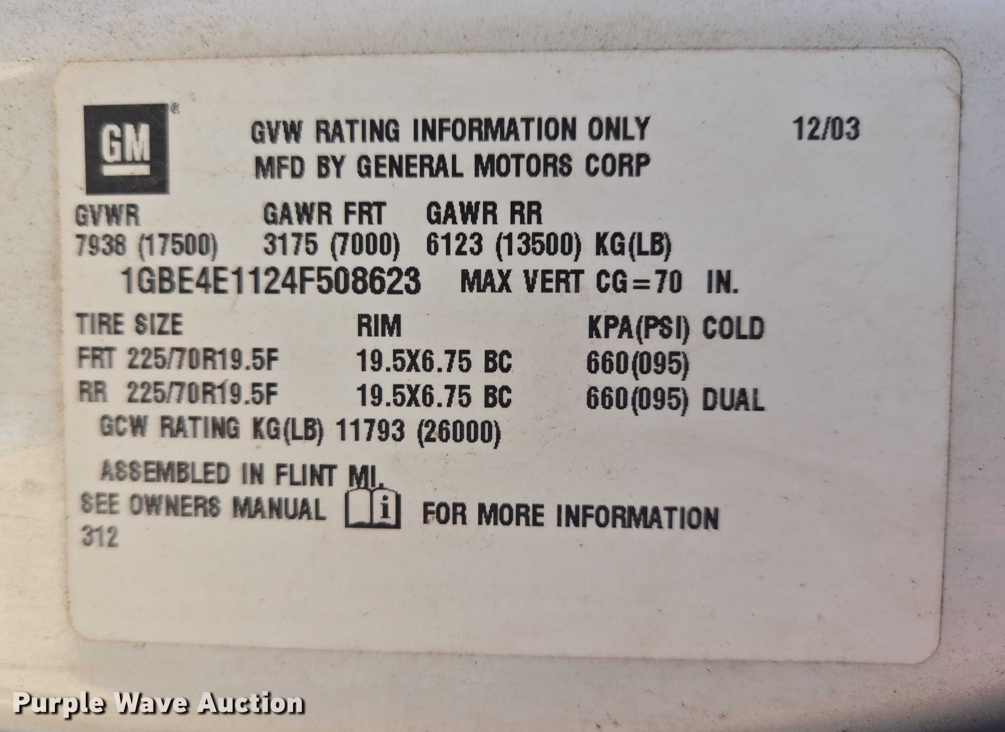 - VIN: 1GBE4E1124F508623