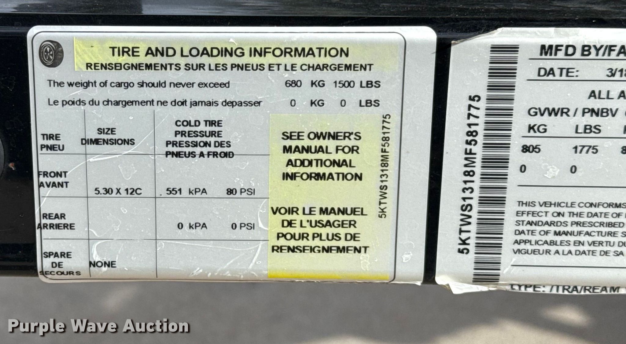 • VIN: 5KTWS1318MF581775