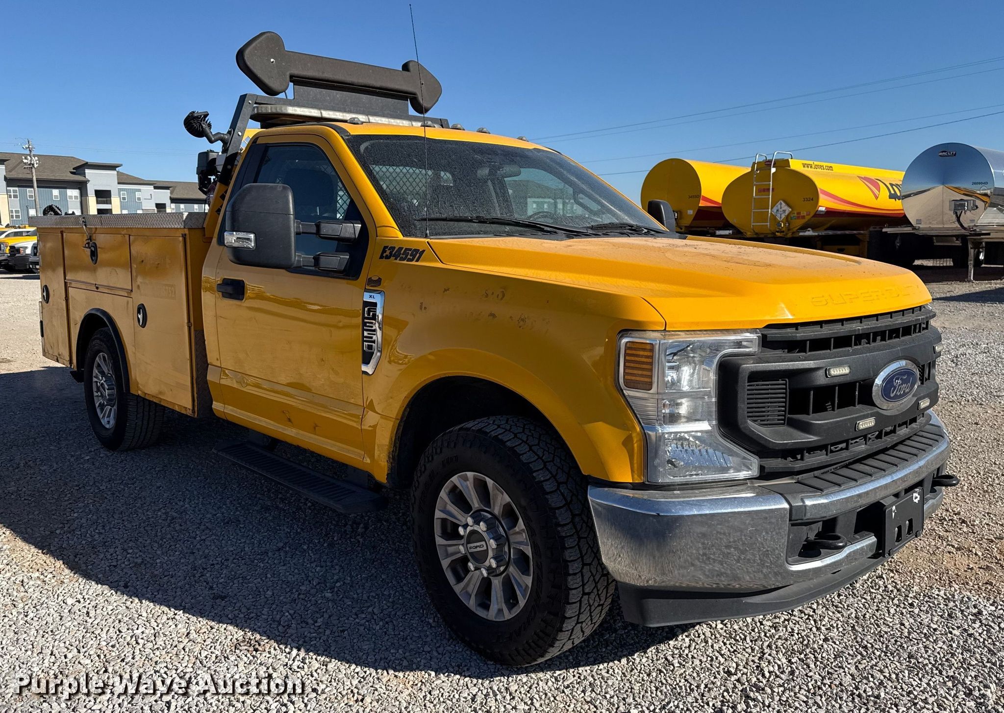 Purple Wave is selling a used 3/4 or 1 Ton Pickup or Van in Oklahoma. This item is a 2020 Ford F350 Super Duty utility bed pickup truck with the following: Miles: 163,922 on odometer, VIN: 1FDRF3E64LEE34591, Unit #: E34591