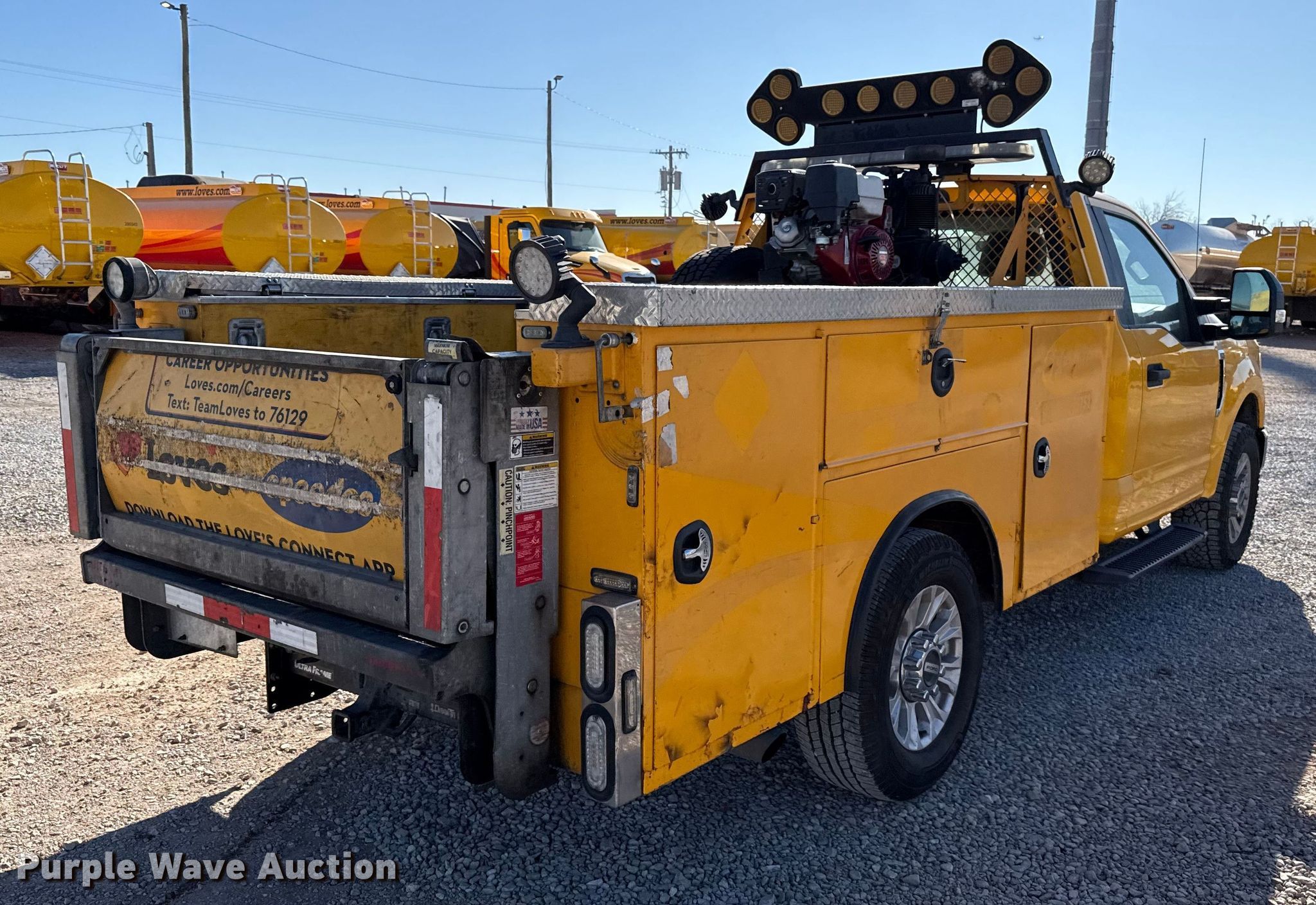 This 2020 Ford F350 Super Duty utility bed pickup truck will sell to the highest bidder regardless of price.