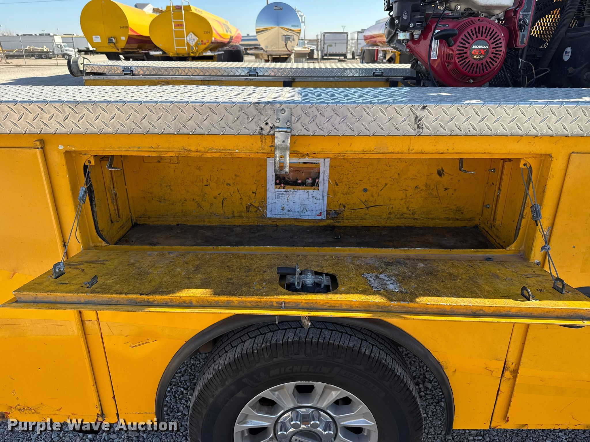 2020 Ford F350 Super Duty utility bed pickup truck. Miles: 163,922 on odometer, VIN: 1FDRF3E64LEE34591, Unit #: E34591. Engine Displacement: 6.2L, Cylinders: 8, Fuel type: Gas. Transmission Automatic. Interior AC, Heat, Heated mirrors, Power windows, Power locks, Cruise control, Backup camera, Auxiliary controls, Brake controller. Features Bed Utility bed, CM Truck Beds 110SB, Serial: DB46817, Length: 9' 2", Width: 78", End gate lift Anthony Liftgates, Inc. ALB 1500, Serial: 131412, Lift capacity: 1,500 lbs, Air compressor Honda GX390 engine, Fuel type: Gas. Tires Size: LT275/65R18. Notes Dash warning indicator: Check engine, TPMS, ABS, Traction control, Windshield chipped or cracked, Unknown operating condition of air compressor, Utility bed compartment latch issues. Oklahoma title. Title distribution may be delayed up to 30 days from verification of funds. Gemini Motor Transport. Oklahoma City, OK 73127