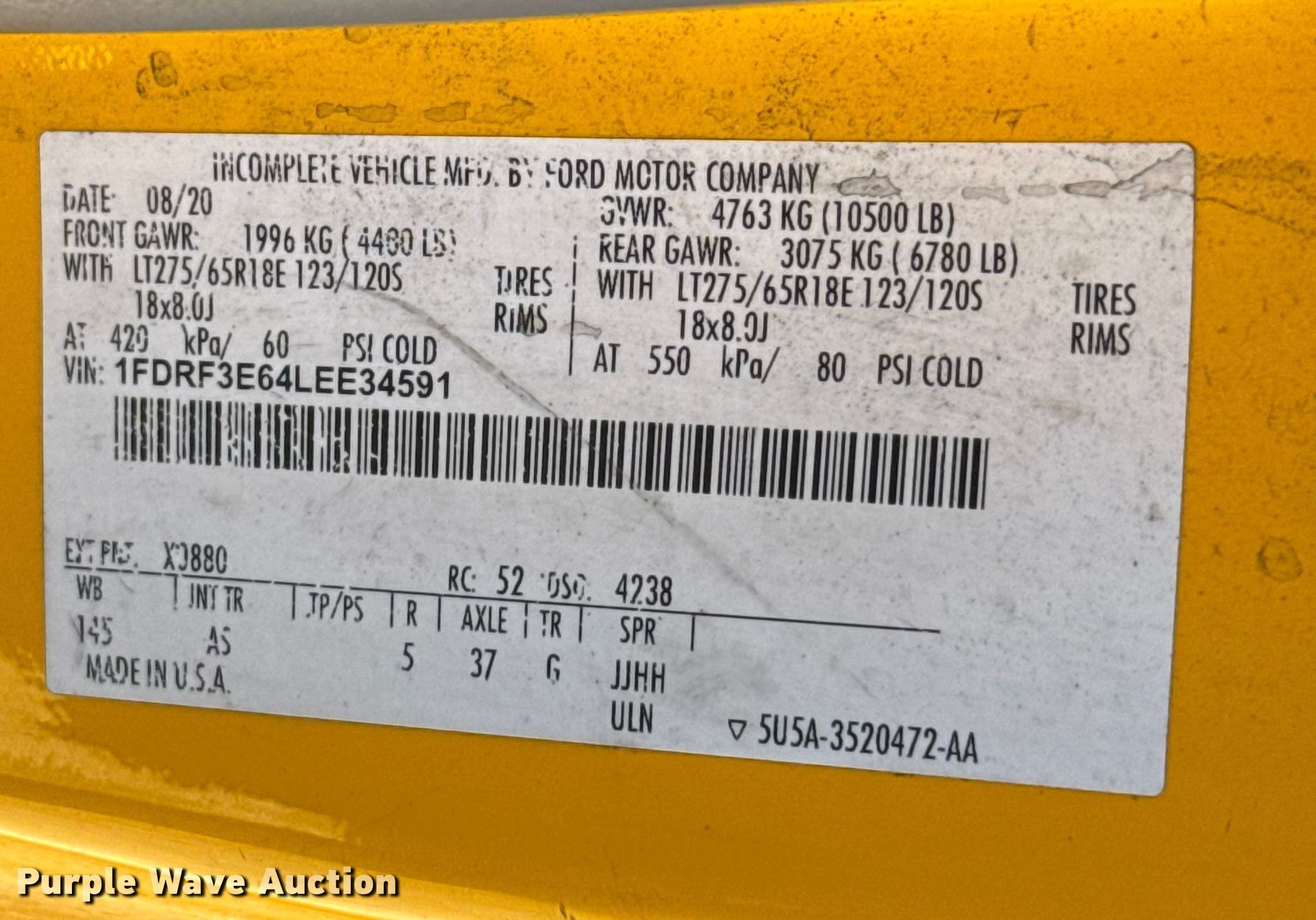 - VIN: 1FDRF3E64LEE34591