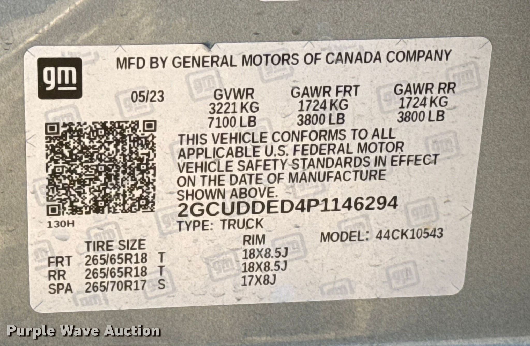 Purple Wave is selling a used 1/2 Ton Pickup or Van in Oklahoma. This item is a 2023 Chevrolet Silverado 1500 Crew Cab pickup truck with the following: Miles: 130,290 on odometer, VIN: 2GCUDDED4P1146294, Unit #: 146294