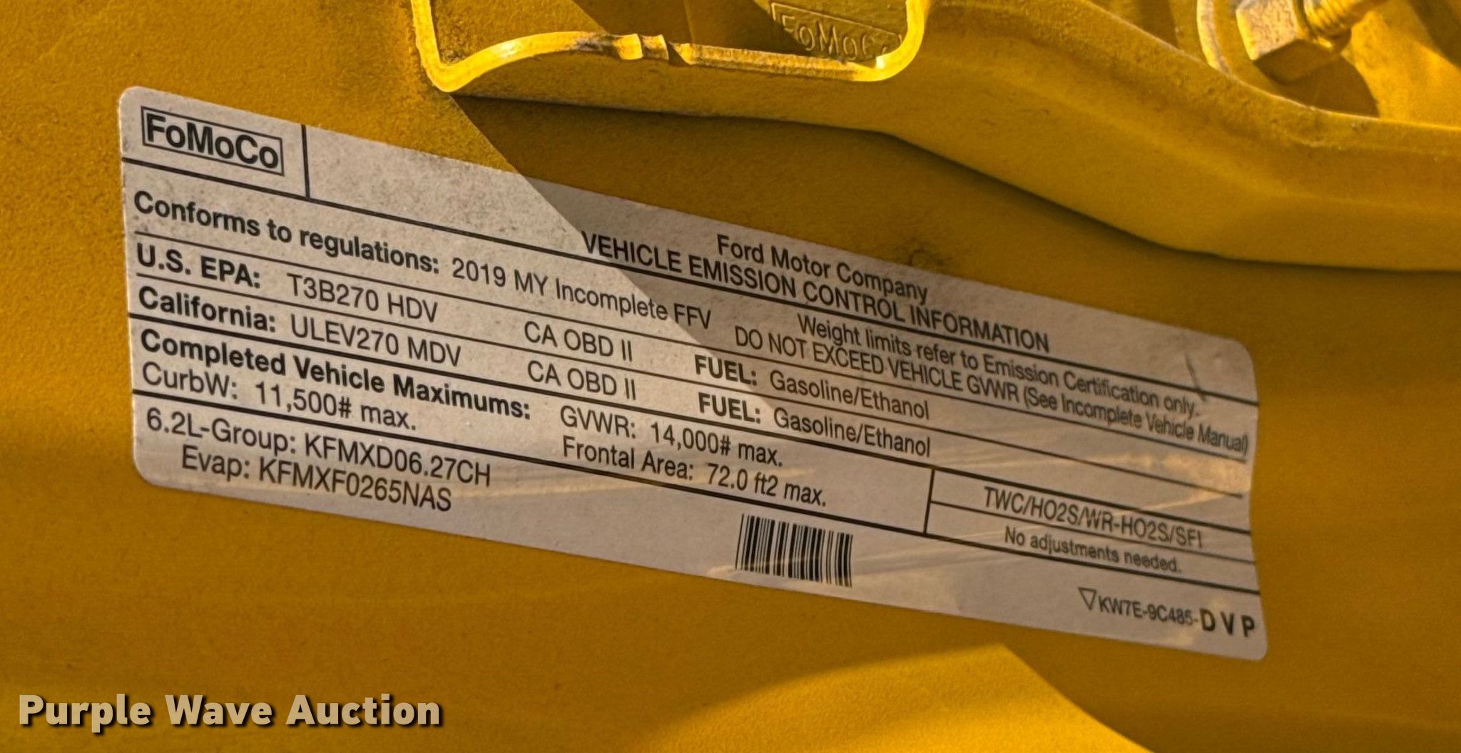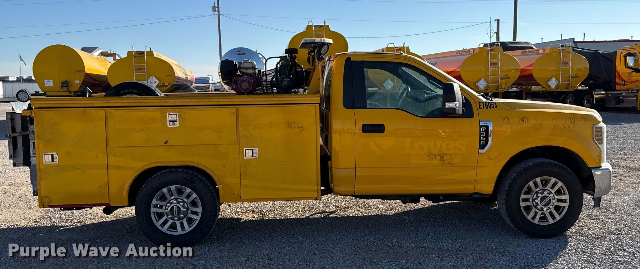 2019 Ford F350 Super Duty utility bed pickup truck. Miles: 164,786 on odometer, VIN: 1FDRF3E61KEE76053, Unit #: E76053. Engine Displacement: 6.2L, Cylinders: 8, Fuel type: Gas. Transmission Automatic. Interior AC, Heat, Heated mirrors, Power windows, Power locks, Cruise control, Backup camera, Auxiliary controls, Brake controller. Features Bed Utility bed, Reading Classic II, Serial: 3224631, Length: 9', Width: 78", End gate lift Tommy Gate Co., Serial: 00657955, Lift capacity: 1,300 lbs, Air compressor Fuel type: Gas, Auxiliary fuel tank GPI pump. Tires Size: LT275/65R18. Notes Dash warning indicator: Check engine. Oklahoma title. Title distribution may be delayed up to 30 days from verification of funds. Gemini Motor Transport. Oklahoma City, OK 73127
