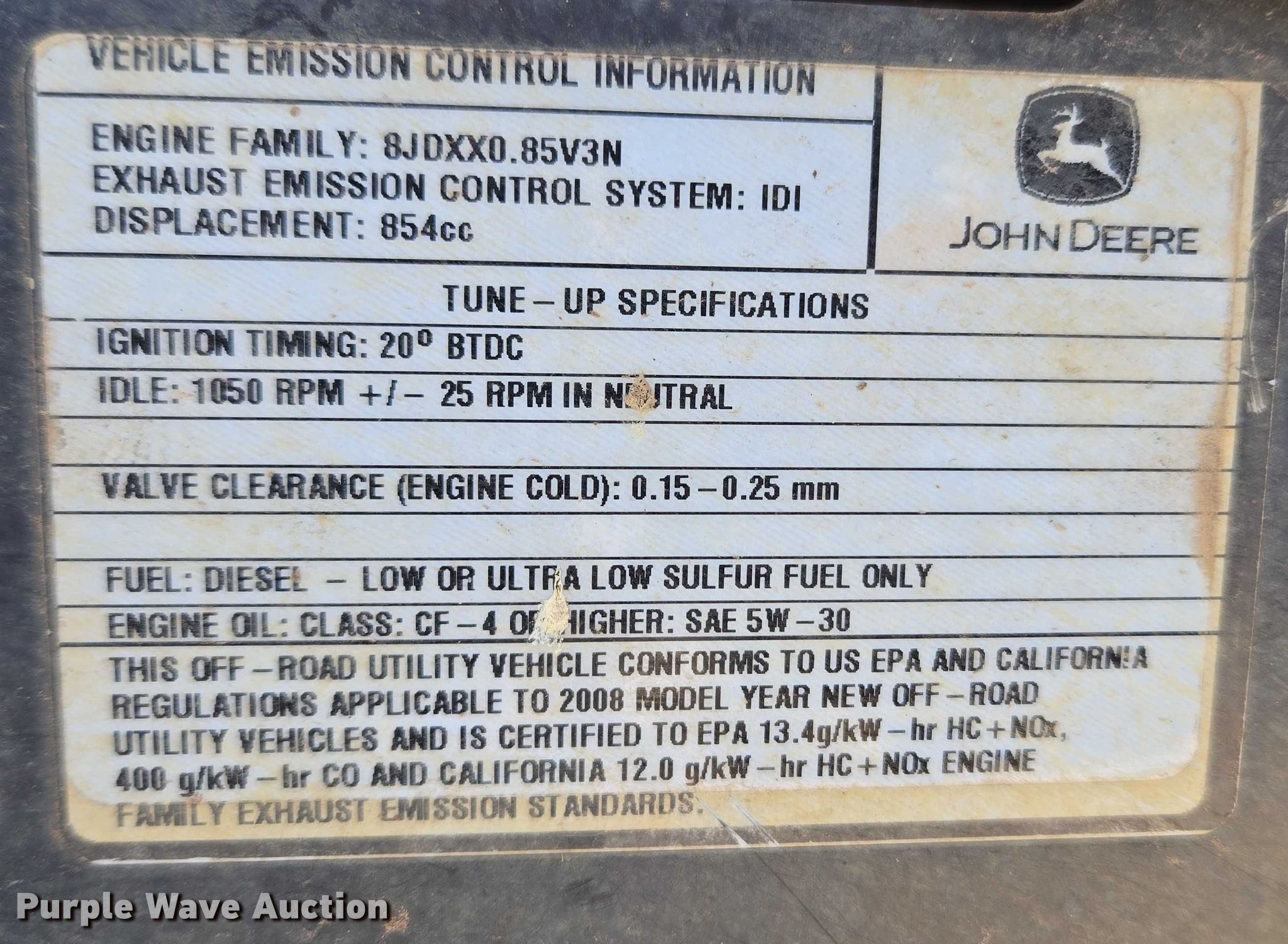 Purple Wave is selling a used Utility Vehicle in Oklahoma. This item is a 2008 John Deere 850D utility vehicle with the following: Hours: 3,804 on meter, Serial: 1JDUV42B78M022987