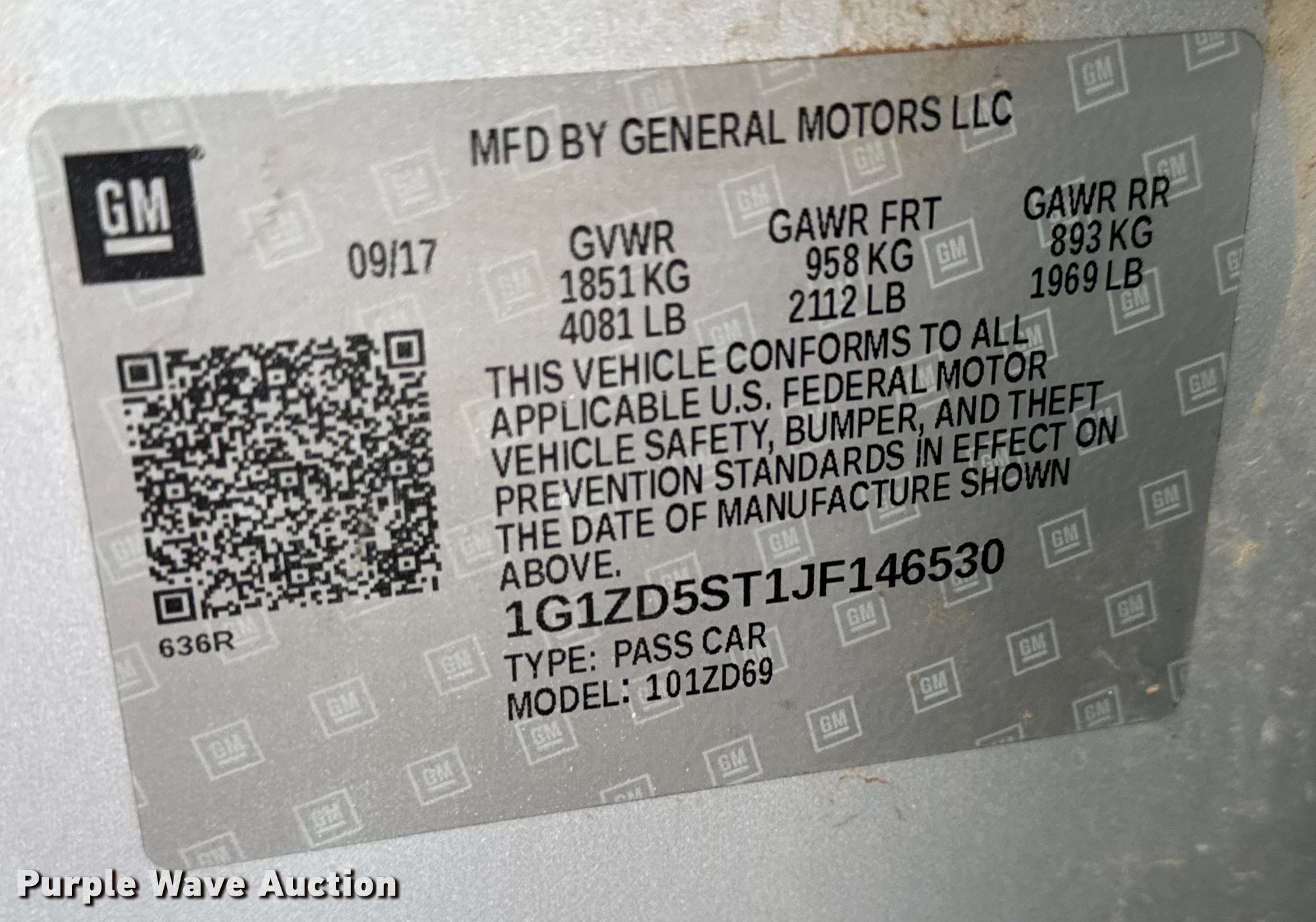 Purple Wave is selling a used Passenger Vehicle in Kansas. This item is a 2018 Chevrolet Malibu with the following: Miles: 106,519 on odometer, Miles or hours may vary, unit still in use, VIN: 1G1ZD5ST1JF146530