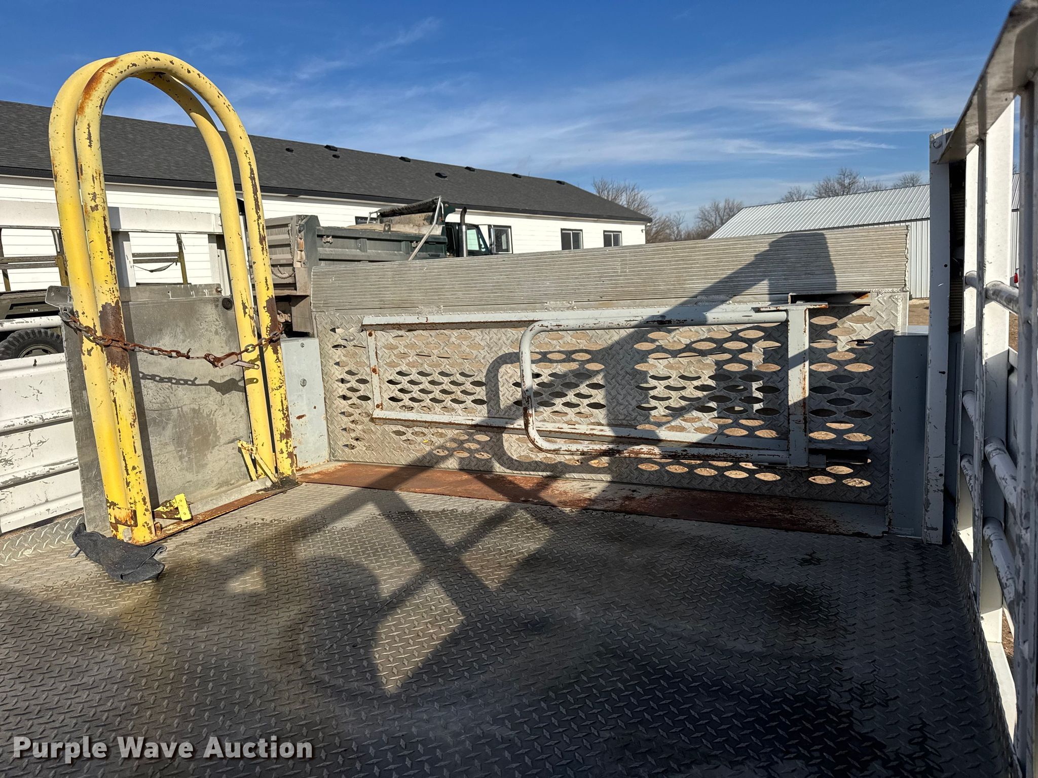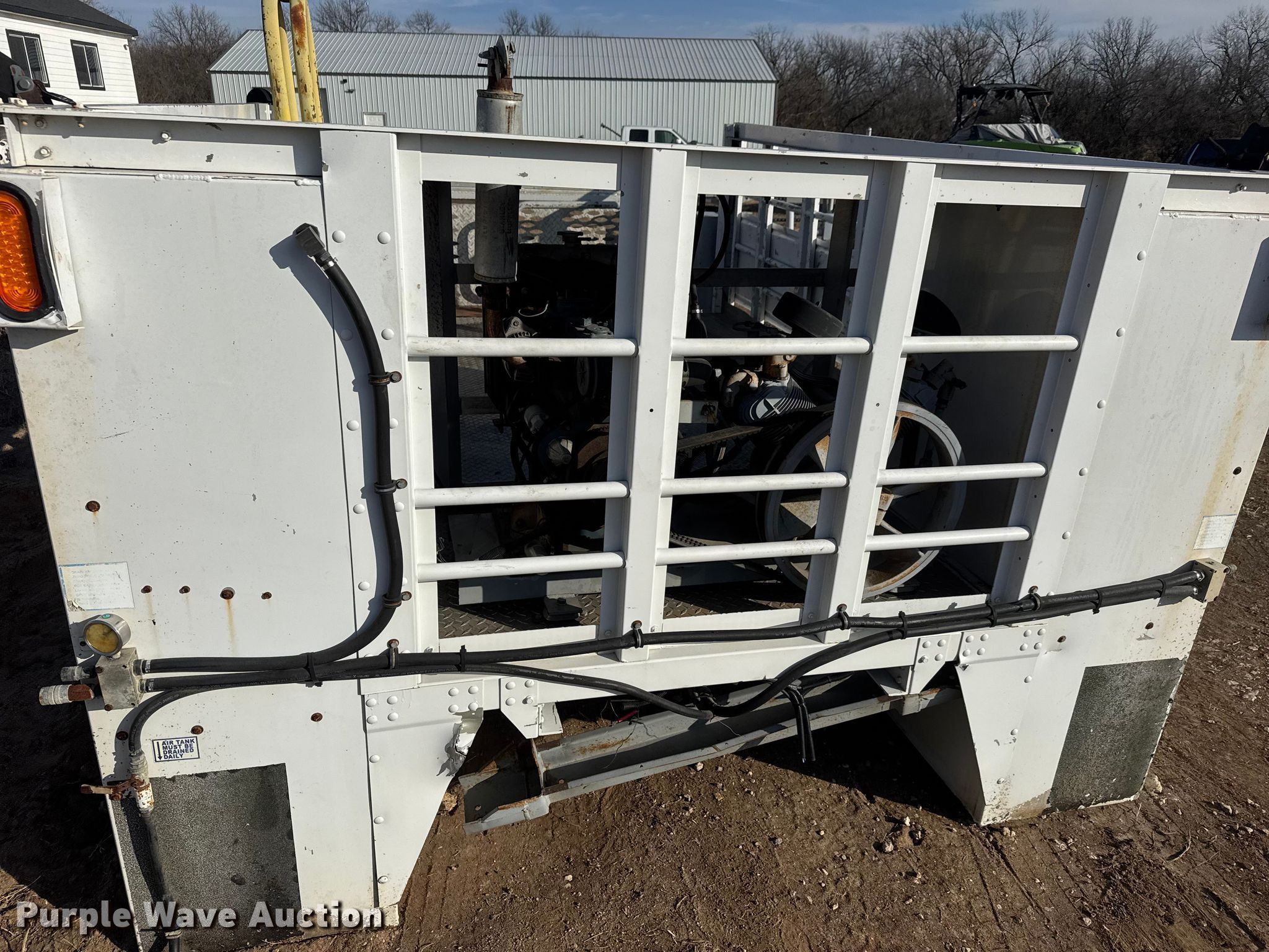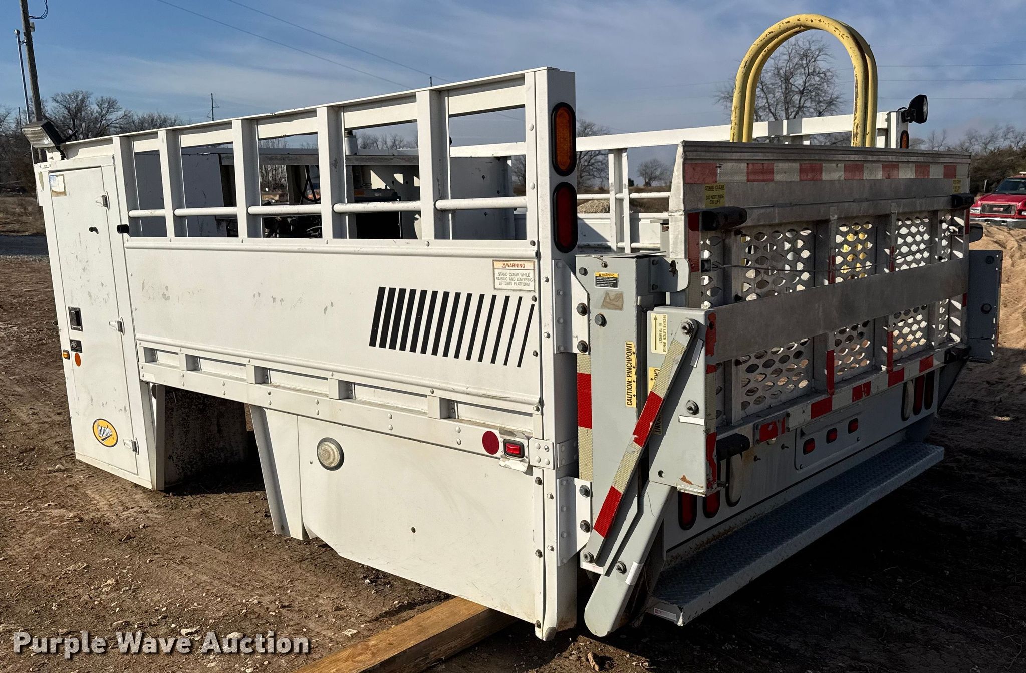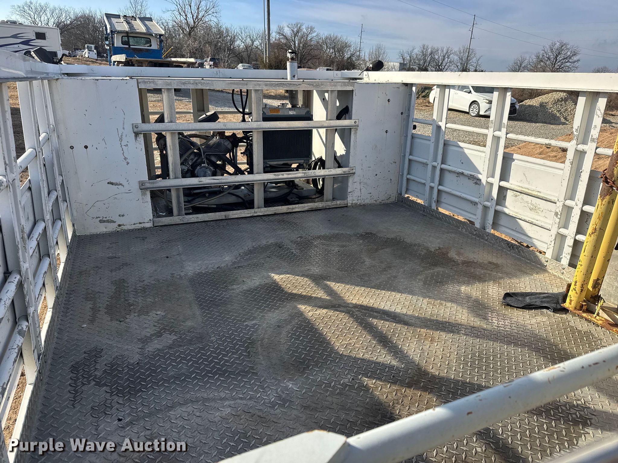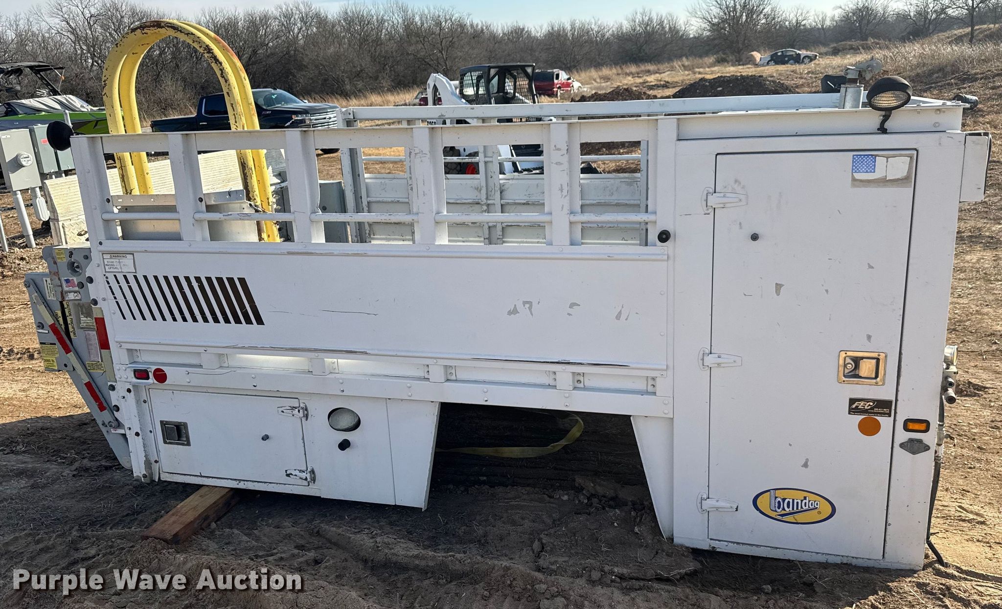 Purple Wave is selling a used Truck Part and Attach. in Kansas. This item is a FEC utility bed with the following: Bed, Utility bed, Length: 12', Width: 96", Air compressor, Kubota D902-ET02 engine, Cylinders: 3, Fuel type: Diesel, Displacement: 0.898L, Hours: 1623,, End gate lift, Capacity: 2000 lbs, Tire cage