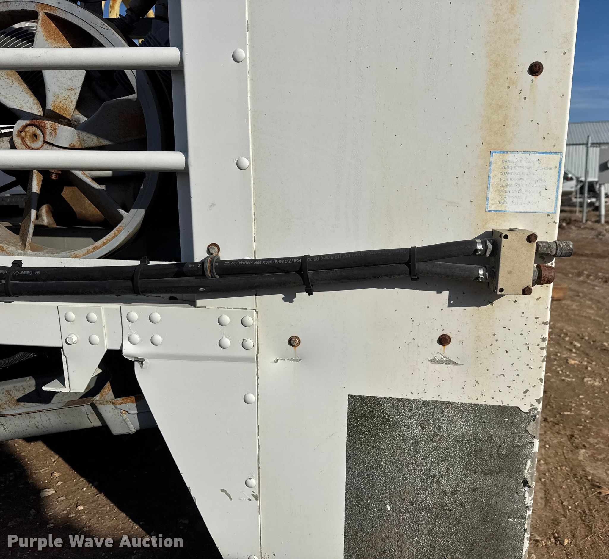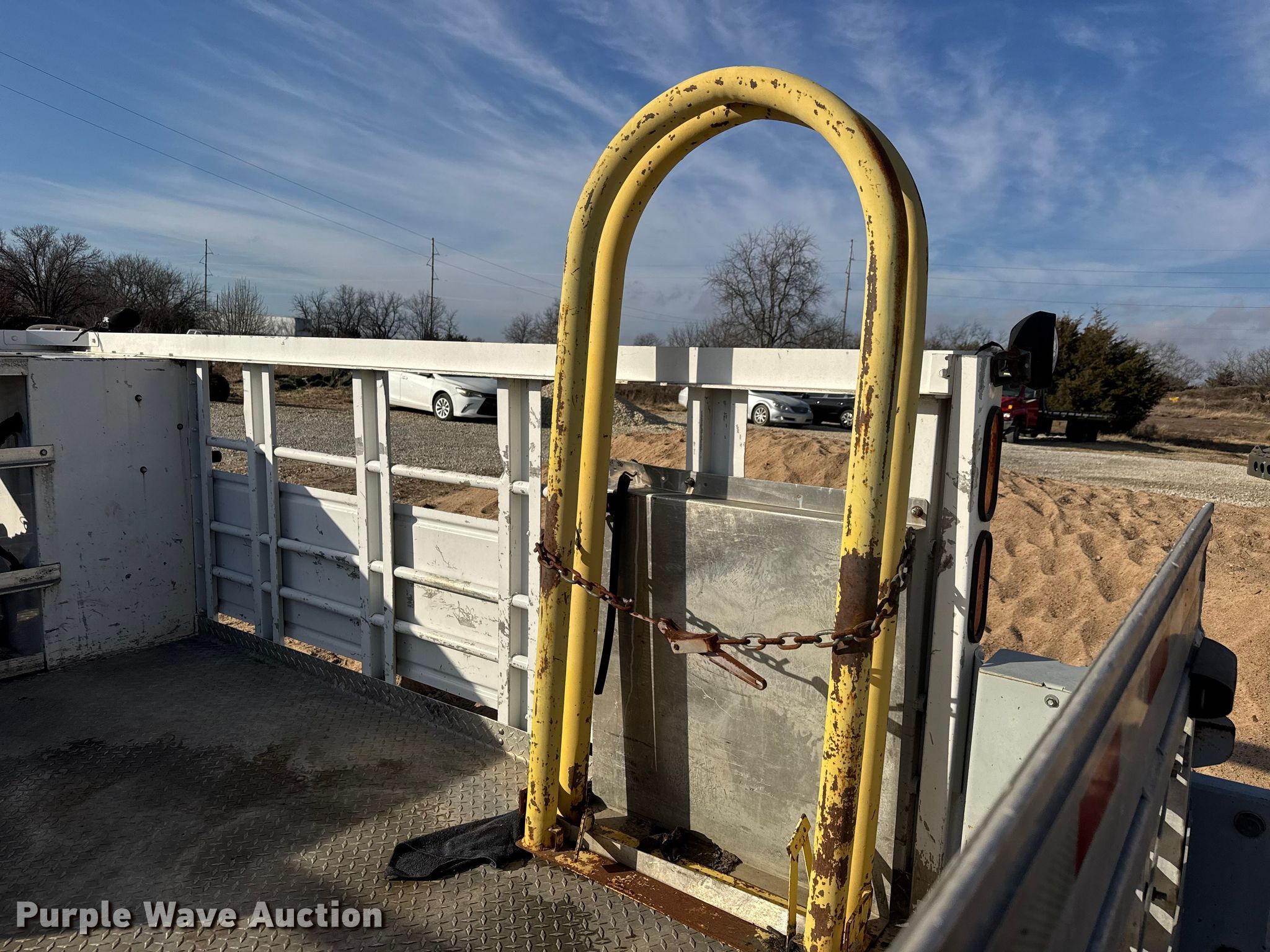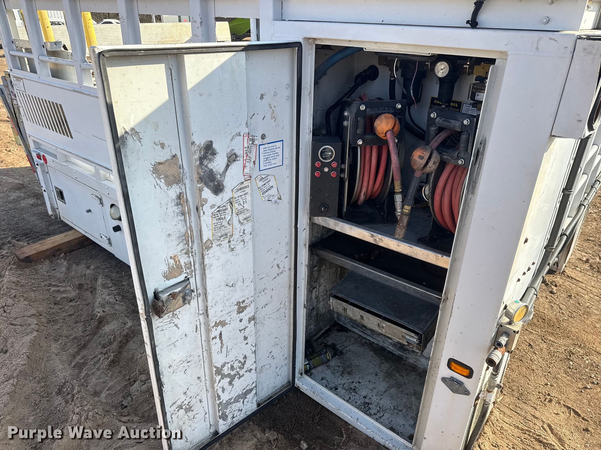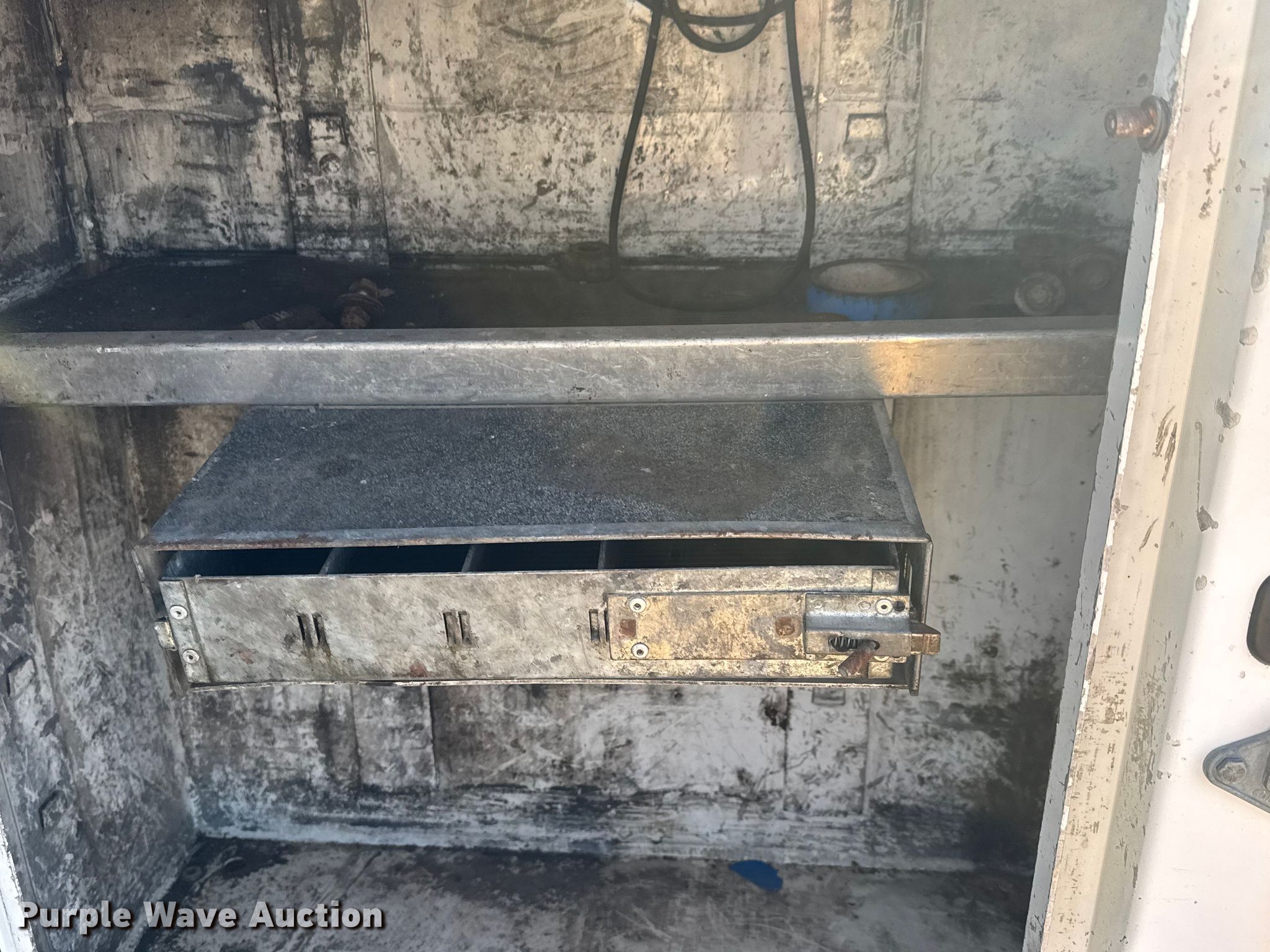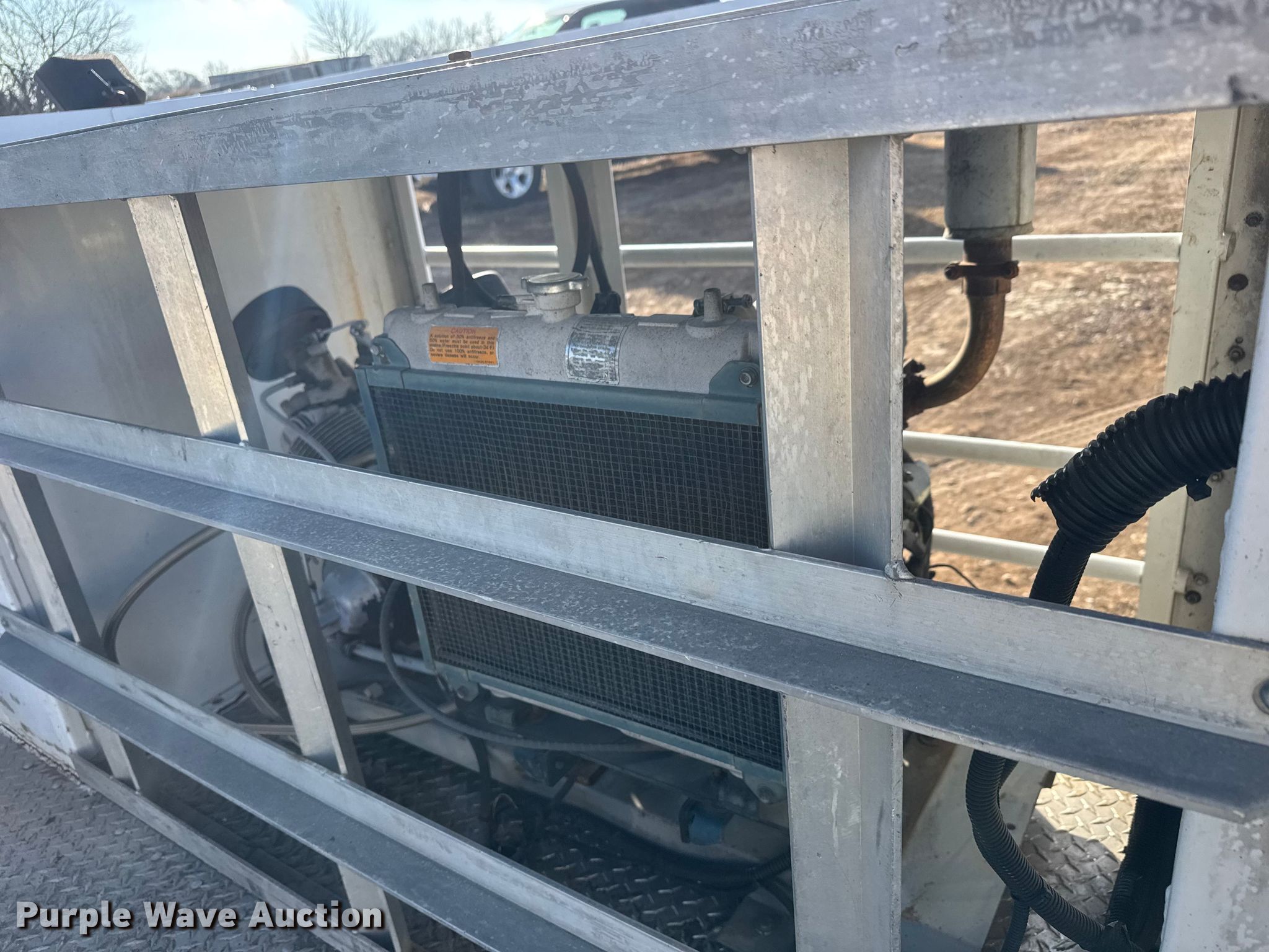 Purple Wave is selling a used Truck Part and Attach. in Kansas. This item is a FEC utility bed with the following: Bed, Utility bed, Length: 12', Width: 96", Air compressor, Kubota D902-ET02 engine, Cylinders: 3, Fuel type: Diesel, Displacement: 0.898L, Hours: 1623,, End gate lift, Capacity: 2000 lbs, Tire cage