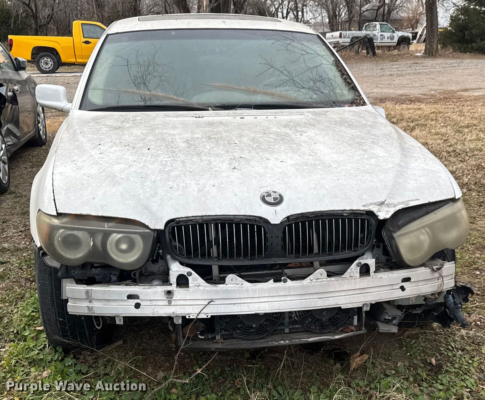 2002 BMW 745i limousine. Miles: 87,212 on odometer, VIN: WBAGL63432DP51416. Engine Displacement: 4.4L, Cylinders: 8, Fuel type: Gas. Transmission Automatic. Interior AC, Heat, Seat: Heated, Power driver, Power passenger, Power windows, Power locks, Cruise control, Powered sunroof. Tires Size: 245/50R20. Notes Dead battery, Rear battery not included, Mirrors damaged, Possible starter issues , Unit must be towed or hauled , Unknown operating condition. Oklahoma title. Title distribution may be delayed up to 14 days from verification of funds. J R TOWING. Haysville, KS 67060