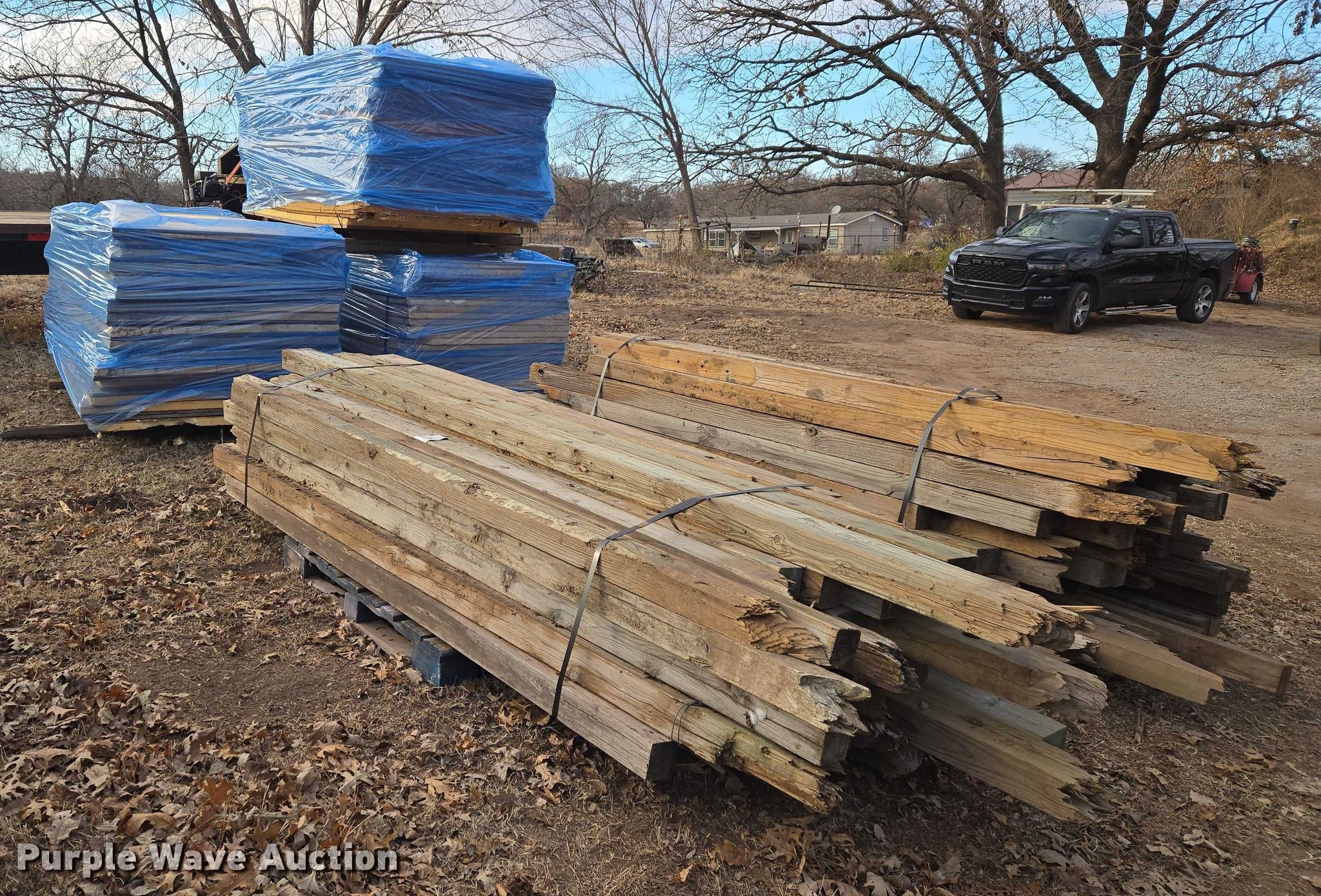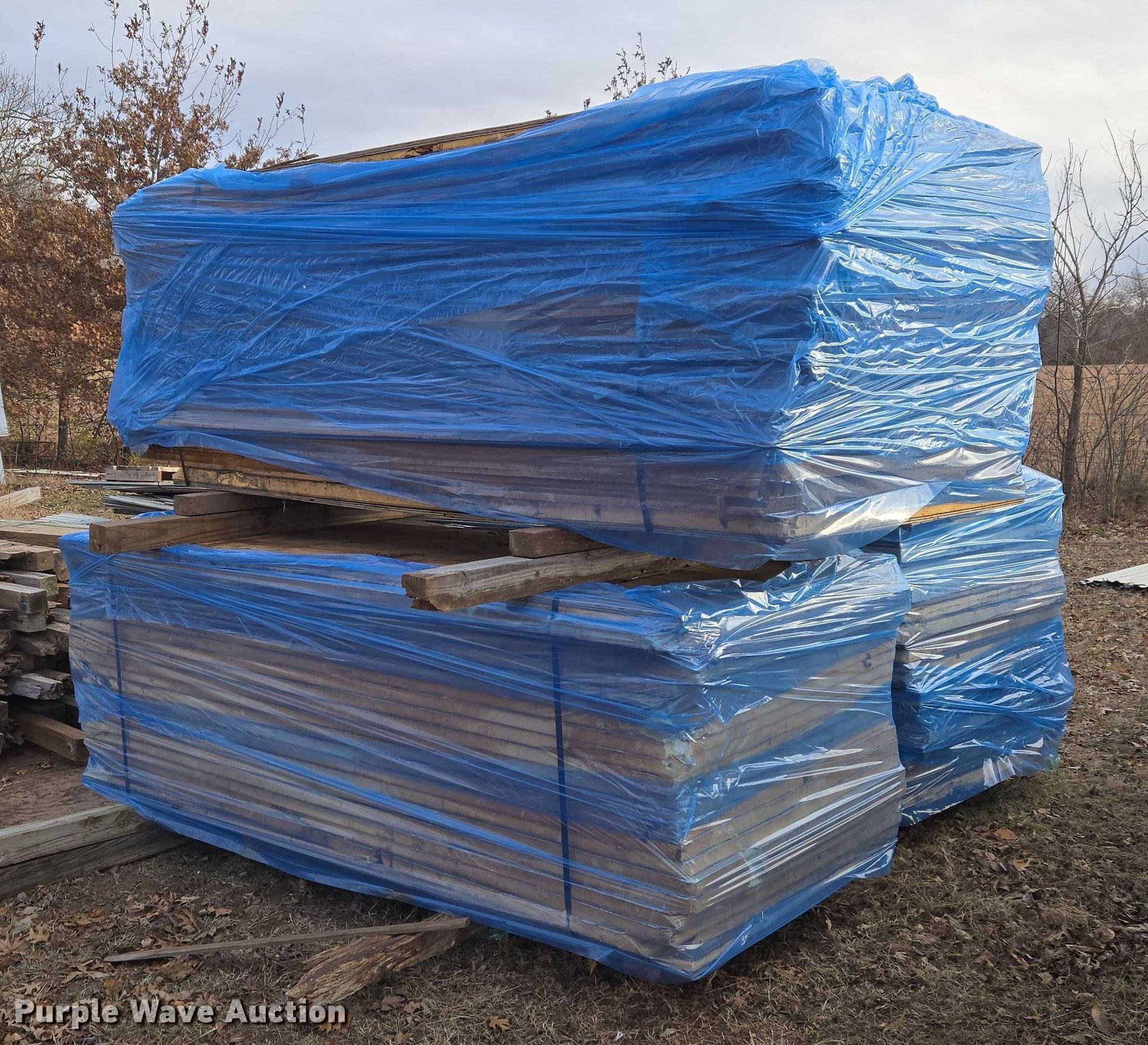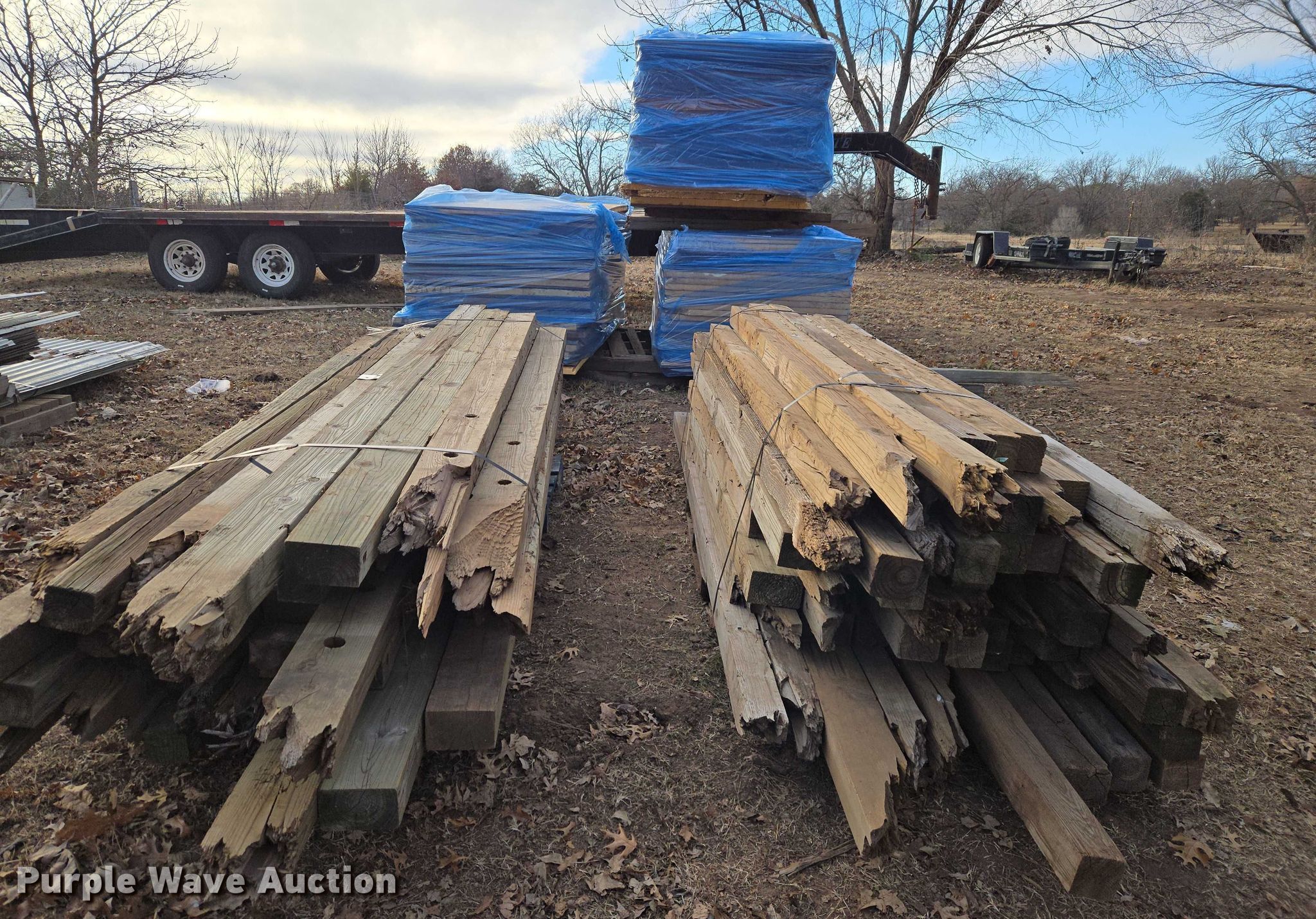 Purple Wave is selling a used Building Materials in Oklahoma. This item is a Building materials with the following: Approx. (60) pieces of insulation, Approx. (100) 4x4's, Approx. (18) 4x6's, 3' H pallets of insulation