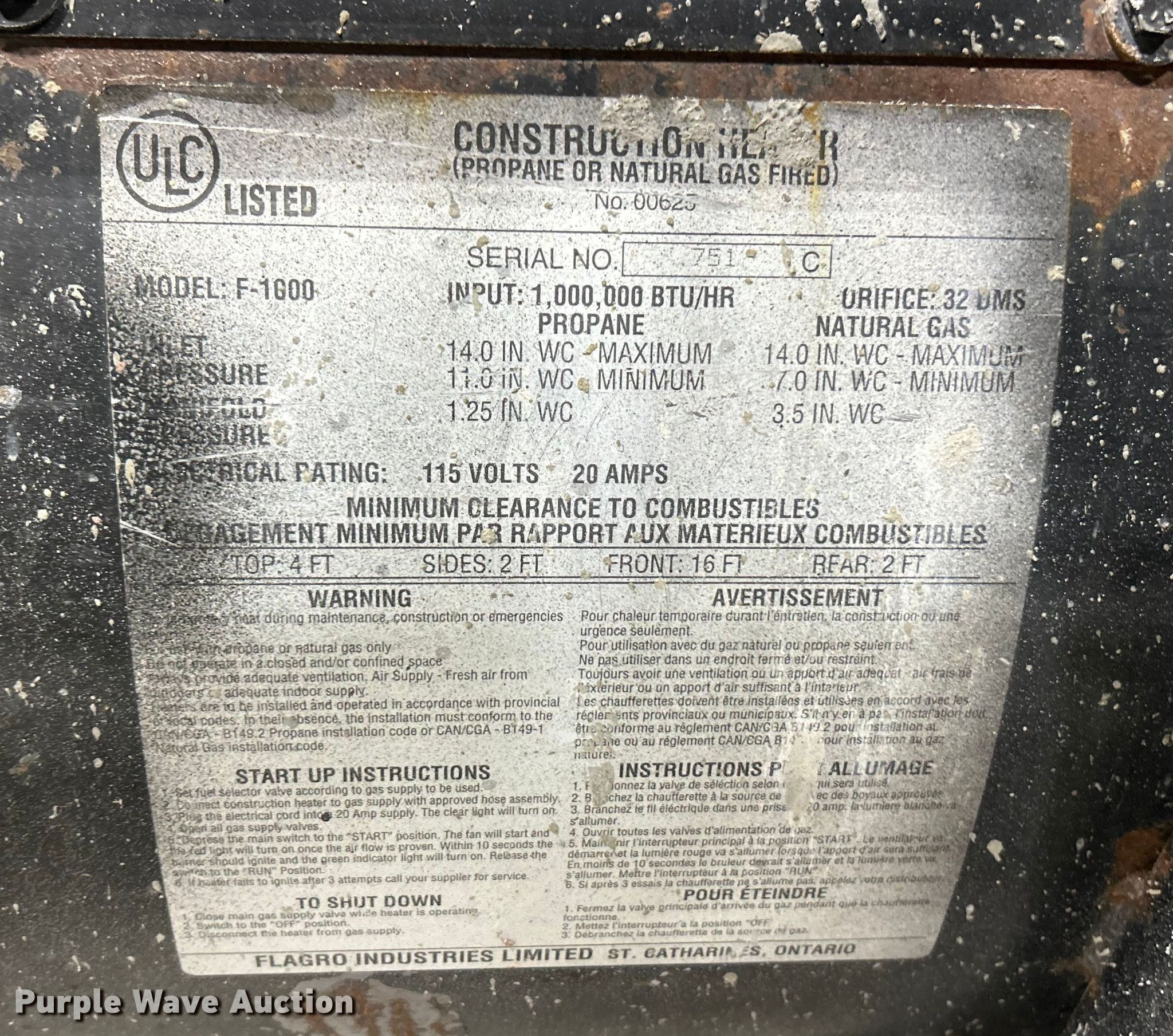 Purple Wave is selling a used Portable Heater or Fan in Missouri. This item is a (3) Flagro heaters with the following: Volts: 115/120, Phase: single, Fuel type: LPG